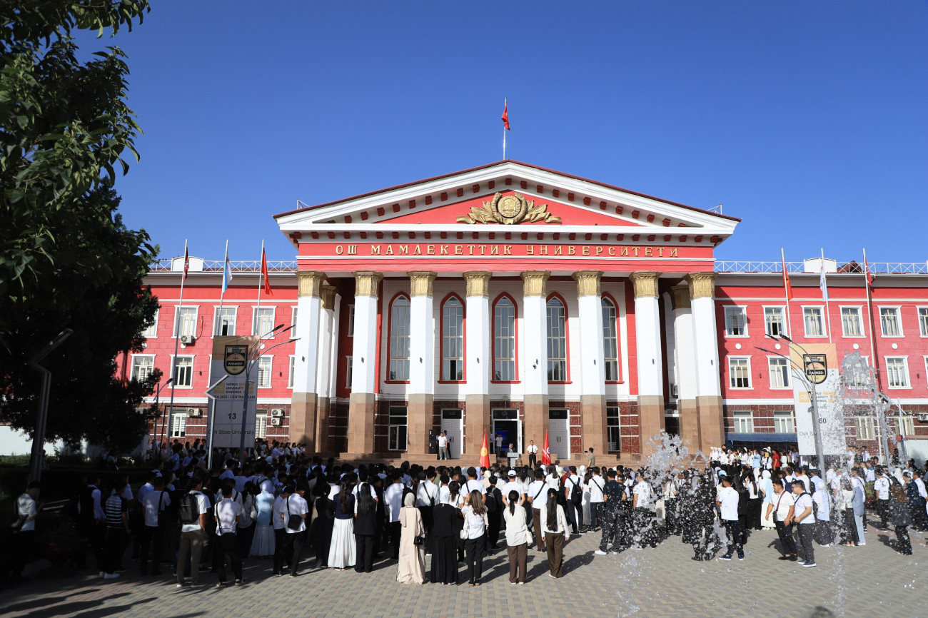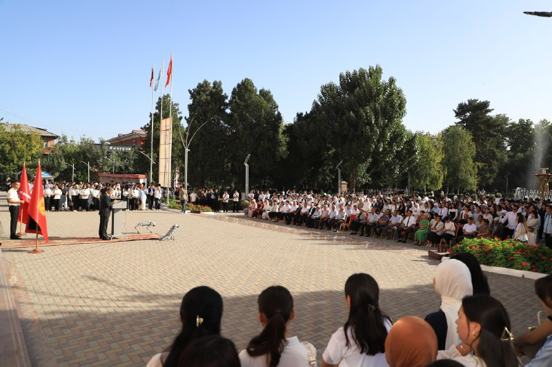 Бүгүн, 1-сентябрда Кыргызстанда Билим күнү белгиленүүдө. Ош мамлекеттик университетинин башкы имаратында өткөн жыйынга ректор Кудайберди Кожобеков баштаган профессордук-окутуучулук курам, студенттер катышты.