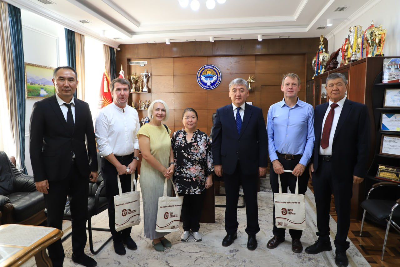 Алар ректор Кудайберди Кожобеков менен жолугушуп, эки университеттин кызматташтыгын тереңдетүү багытындагы мүмкүнчүлүктөрдү талкуулашты. Мындан сырткары ОшМУдагы GreenKG долбоорунун алкагында жүргүзүлүп жаткан иштер тууралуу маалымат берилет. Ал эми долбоордун координатору Абдыганы Абдувалиев, Санариптик трансформациялоо жана электрондук билим берүү боюнча проректор Уларбек Молдояров, Математика, физика, техника жана маалыматтык технологиялар институтунун директору Бектур Азимов сөз презентация жасашат.