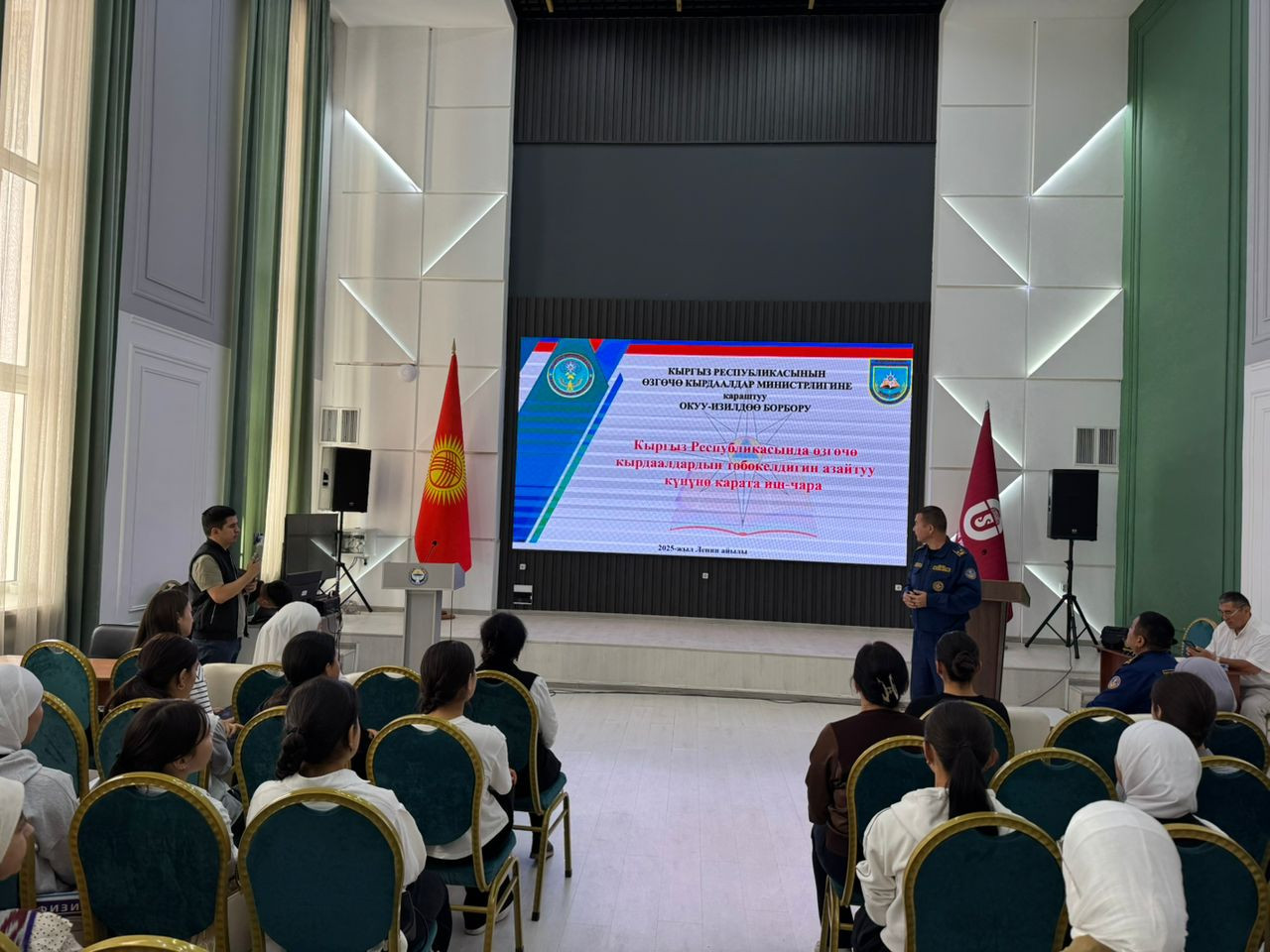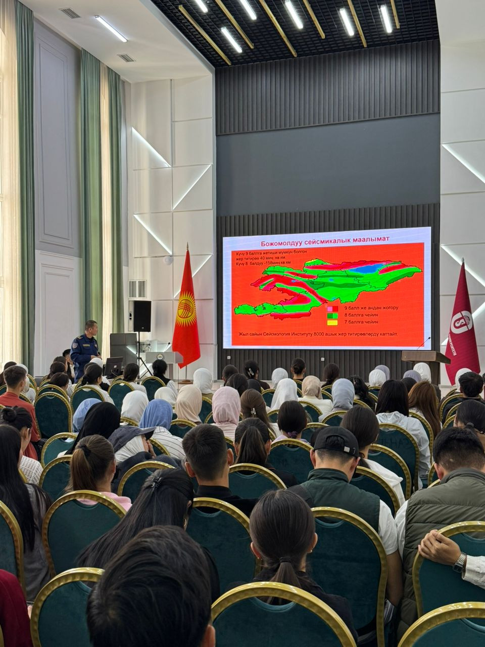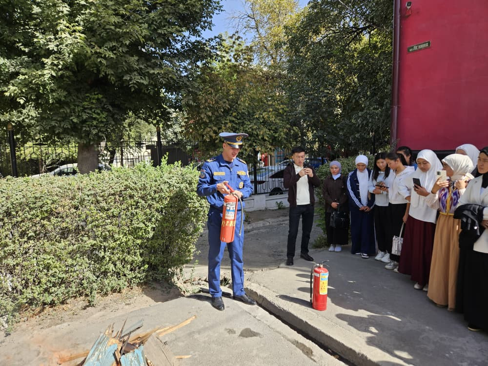 Анда студенттерге өзгөчө кырдаалдардын түрлөрү, табигый жана техногендик кырсыктар катталганда жарандардын өзүн алып жүрүү эрежелери, өрт кырсыктарын алдын алуу, коргонуу боюнча лекция окулуп, талкуу орун алды. Күндүн экинчи бөлүгүндө университеттин башка институт, колледждерине да маалыматтар берилип, өрт коопсуздугу боюнча машыгуулар өткөрүлөт.