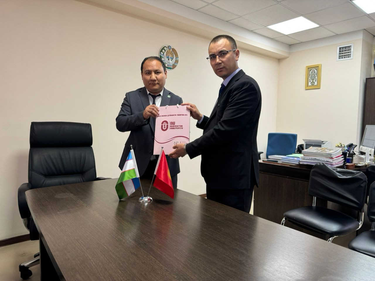 Иш сапардын жүрүшүндө кафедра мүчөлөрү ОшМУнун квалификацияны жогорулатуу борбору менен Өзбек мамлекеттик чет тилдер университетинде педагогикалык кадрларды кайра даярдоо тармактык борборунун ортосунда меморандум түзүүгө жетишти. Анын алкагында тажрыйба, академиялык алмашуулар, конок лекцияларды уюштуруу орун алат.