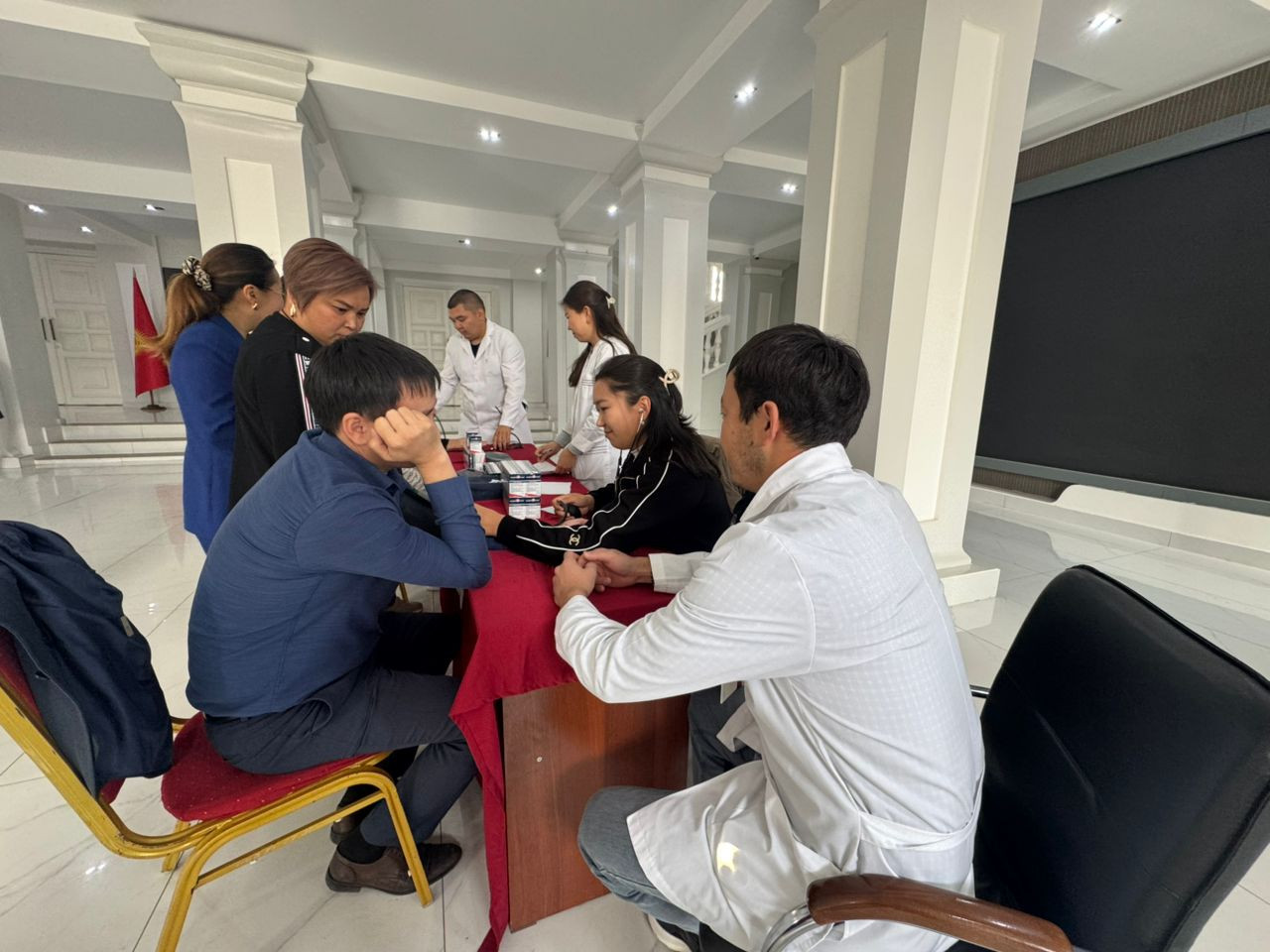 On 13 October, a free medical examination is being held in the main building of Osh State University to mark Heart Day. During the event, university lecturers, staff and students have their blood pressure measured. Recommendations and instructions are given based on the results of the examination. The event is organised by doctors from the Medical Clinic of Osh State University, teachers from the Centre for Postgraduate Continuing Medical Education and resident doctors. According to Abdullabek Yusupov, a cardiologist and endovascular surgeon at the Medical Clinic of Osh State University, the event will last three days and will be held in other university buildings.