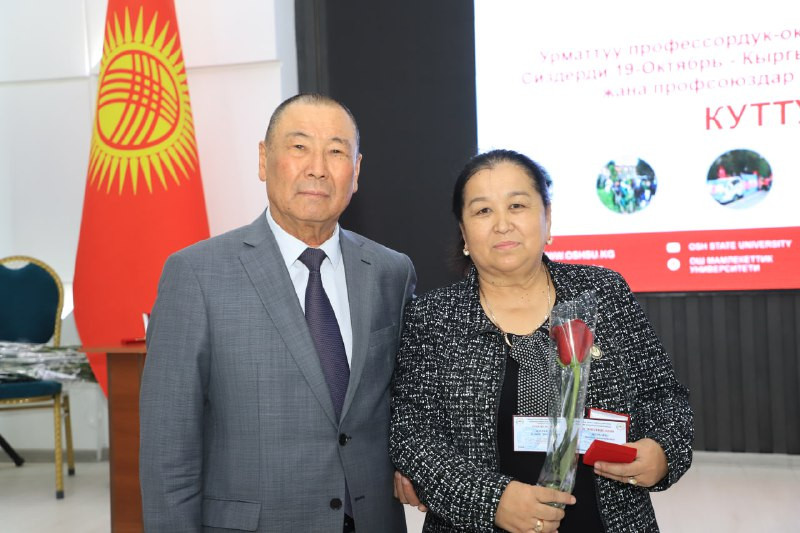 14 October, the trade union committee of Osh State University honoured employees who have worked fruitfully in the field of education and science for many years, demonstrating high professional skills and active participation in public life.