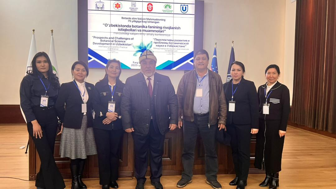 Researchers and graduate students from the Institute of Natural Sciences, Physical Education, Tourism, and Agricultural Technologies at Osh State University - including Associate Professor Orunbek Kolanov, Bolot Karimov, Ainazik Boronbaeva, Orozbai Mamatkulov, Aida Dursunbaeva, Fatima Matkarimova, and Zhazgul Abdyrakhmanova - took part in the international scientific and practical conference “Prospects and Challenges of Botanical Science Development in Uzbekistan,” dedicated to the 75th anniversary of the distinguished botanist V. Makhmudov.
