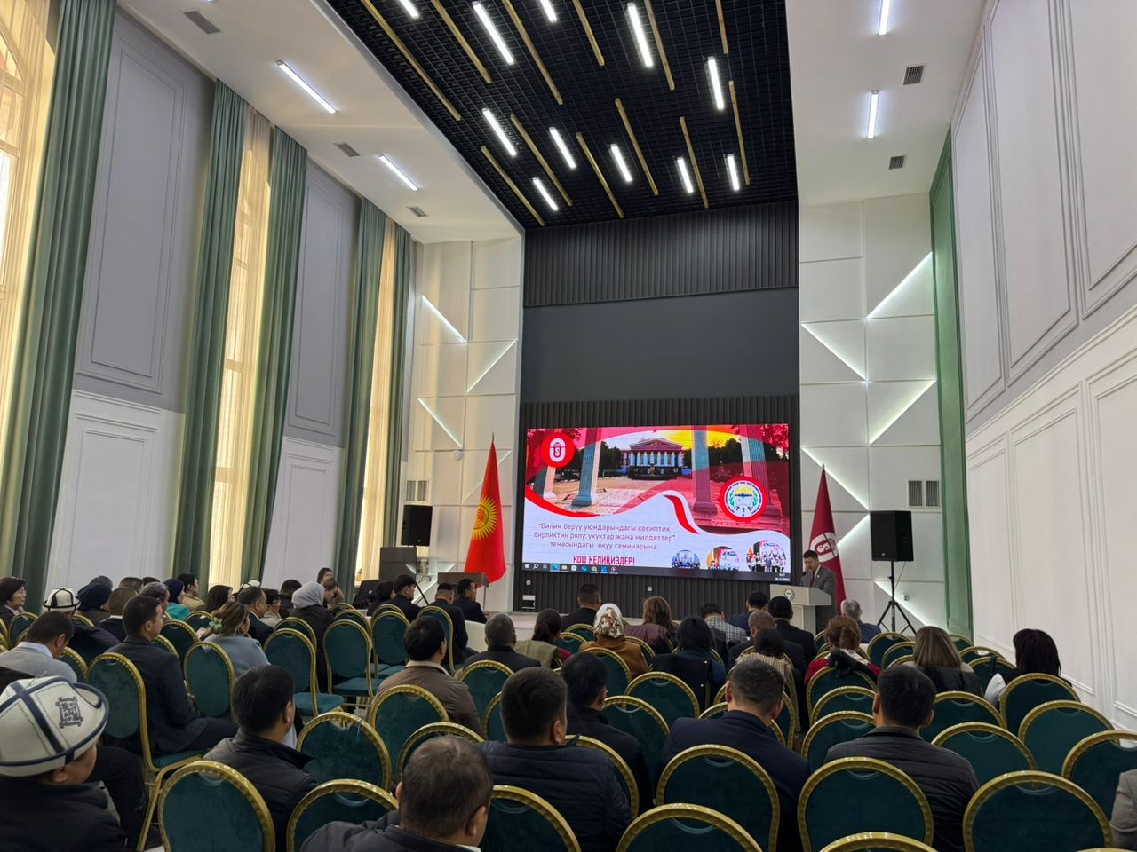The event was opened by the chairman of the Central Committee of the Trade Union of Education and Science Workers, Salamat Boyonov, and the vice-rector for external relations at Osh State University, Kursantbek Attokurov, who noted the importance of the seminar.
