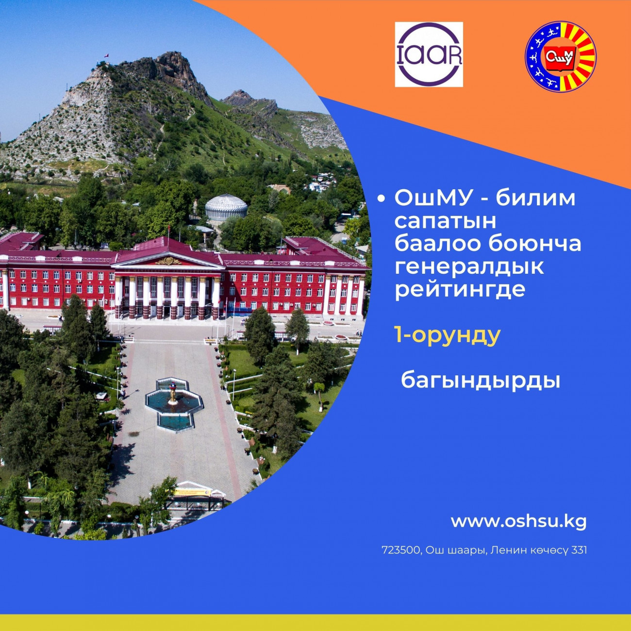 According to the results of the program "Demand rating of universities of the Kyrgyz Republic - 2021" conducted by the Independent Agency for Accreditation and Rating (NAAR), Osh State University took first place in the bachelor's program in 30 areas and overall ranking.
