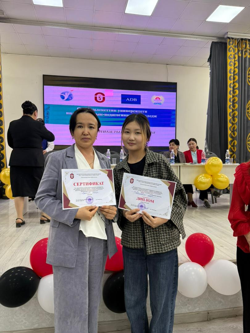 Second place was awarded to Mushtaribonu Kosimova, a student of the Industrial-Pedagogical College, and Begimai Karaeva, a student of the Kyrgyz-Uzbek International University. Third place was taken by Begimai Karaeva, Asema Tutashova, and Sora Dekhkanova. The winners were awarded diplomas and prizes.