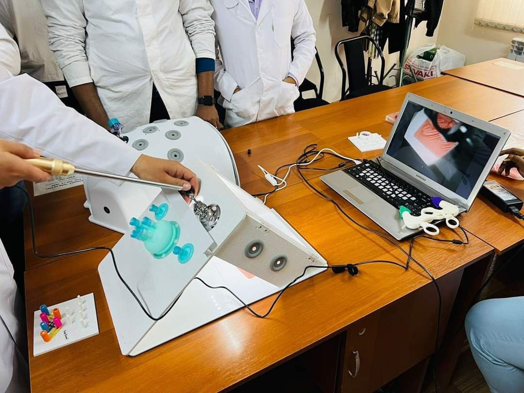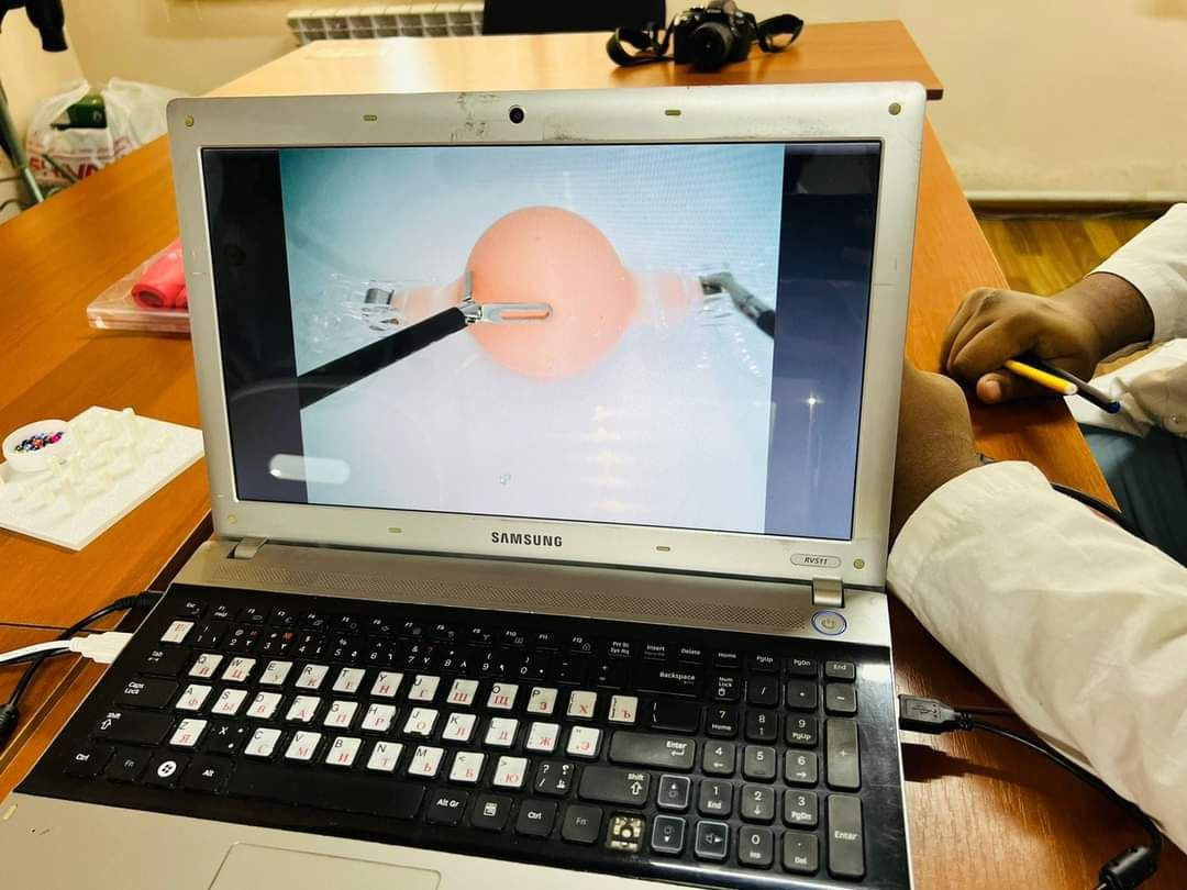 An interactive laparoscopic simulator was acquired at the International Medical Department of Osh State University in order to improve and develop the practical skills of students, which was exploited on April 24.