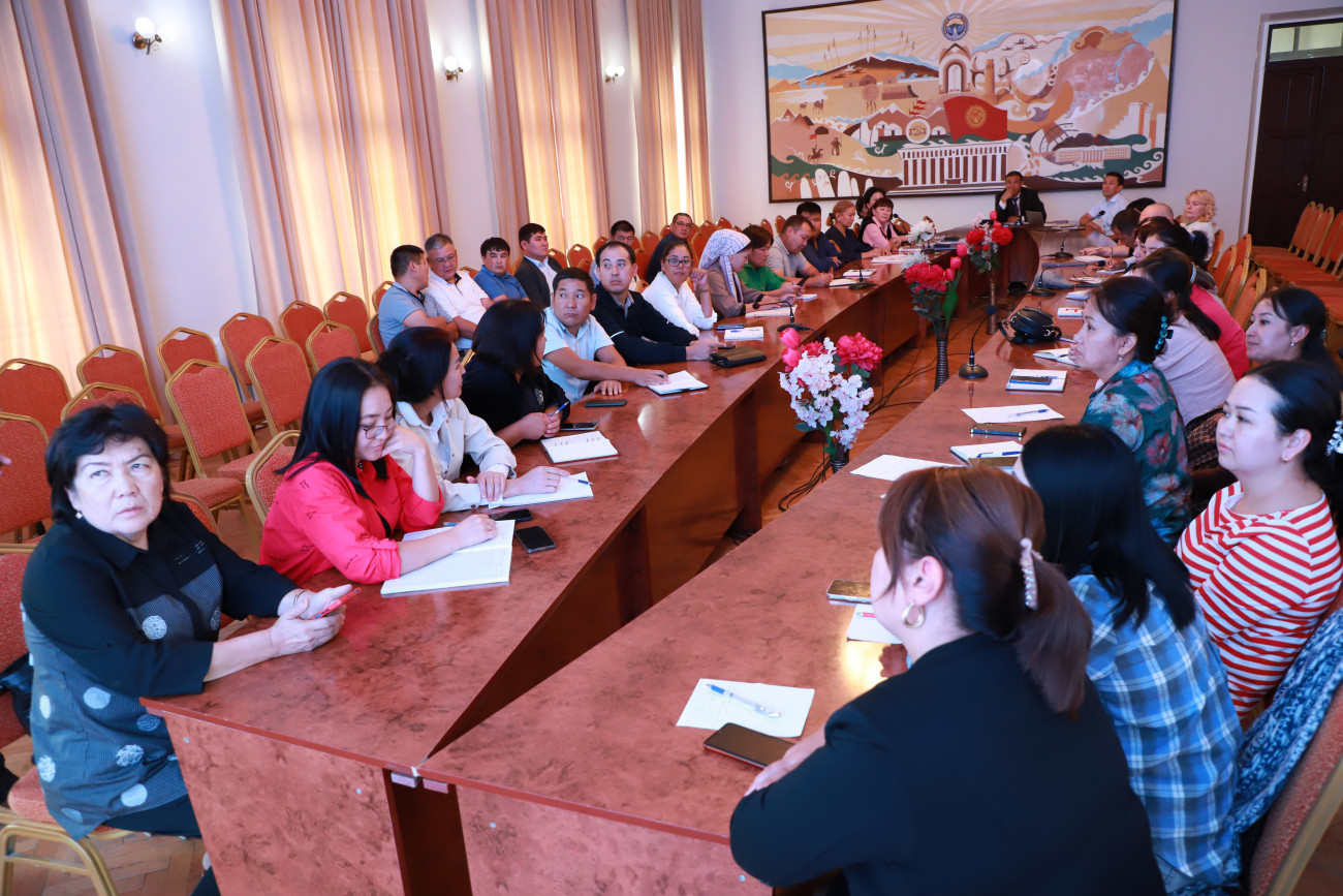 На семинаре, организованного в рамках адаптационной недели, принимают участие проректор по учебной работе Замирбек Божонов, начальник планового финансового отдела Замир Пусур Тегин, начальник учебного отдела Ибрагим Атабаев, заместители деканов факультетов МИТ, БИМ, естествозания, туризма и аграрных технологий, физико-технического и кыргызско-китайского факультетов, заведуюшие кафедрами, методисты.