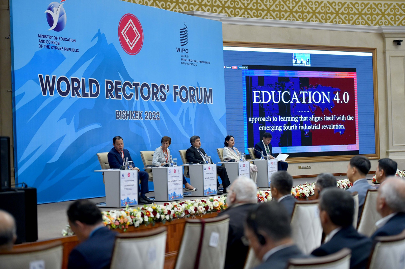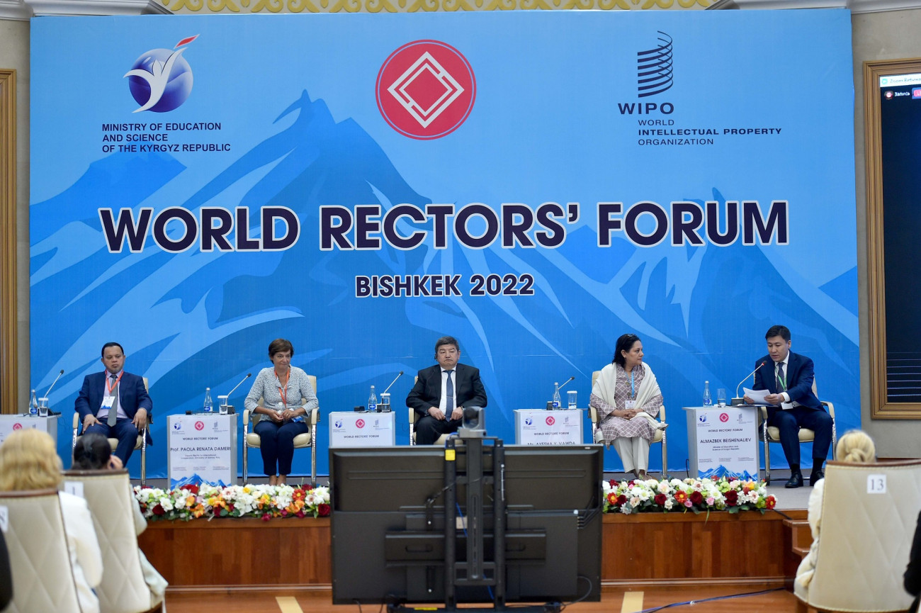 В Бишкек начал свою работу международный форум ректоров «Роль университетов в формировании национальной инновационной экосистемы», на котором принимает участие и ректор ОшГУ Кудайберди Кожобеков. На мировой форум съехались около 100 руководители вузов и экспертов образования из 60 стран мира. Участники встречи обсуждают проблемы и задачи, стоящие перед университетами сегодня, делятся опытом по формированию инновационной экосистемы, переориентации деятельности университетов на решение социально-экономических проблем государства.