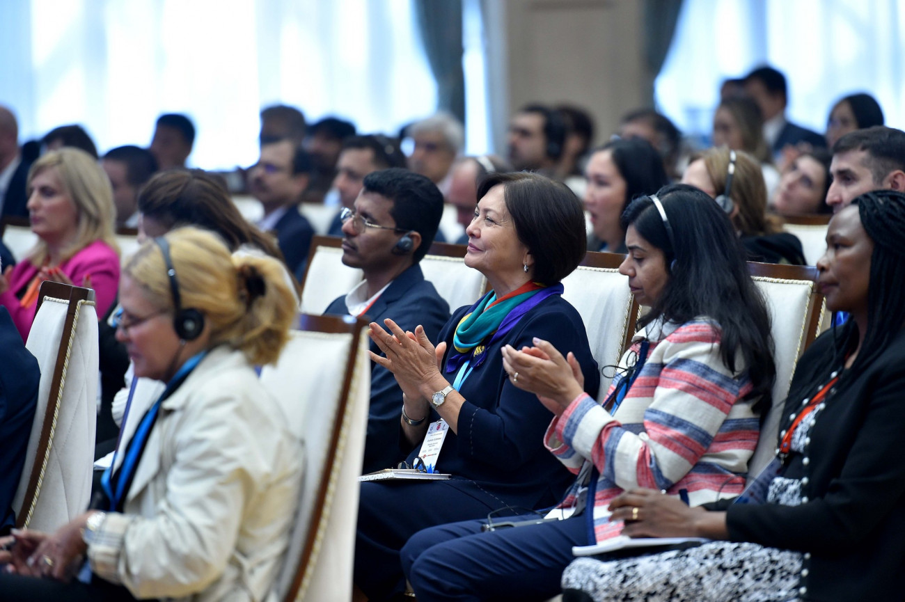На форуме принял участие и выступил председатель кабинета министров КР Акылбек Жапаров. В своей речи в ряду основных направлений развития вузов страны отметил, ОшГУ станет очагом тысяч предприятий, которые составят основу экономики государства. Он также добавил, что экспорт образования -это экспорт людей, любящих свободу и выразил увеоенность, что Кыргызская Республика может стать класстером образования в регионе, что возможно в экосистеме свободно мыслящего общества.