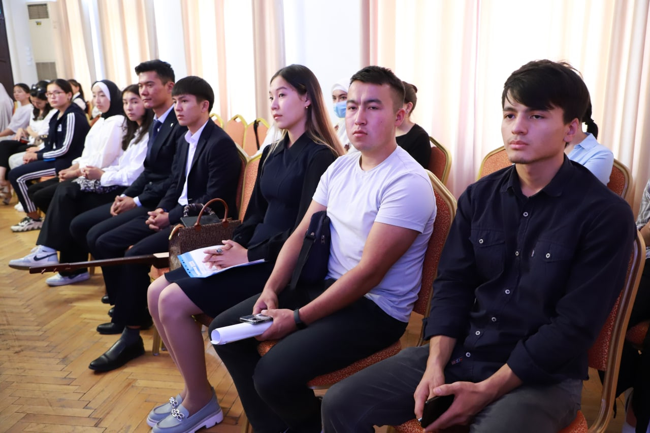 На мероприятии приняли участие проректор по госязыку ОшГУ Мастура Шарипова , руководитель отдела социального развития мэрии г. Ош Нурлан Закиров, преподаватели и студенты.