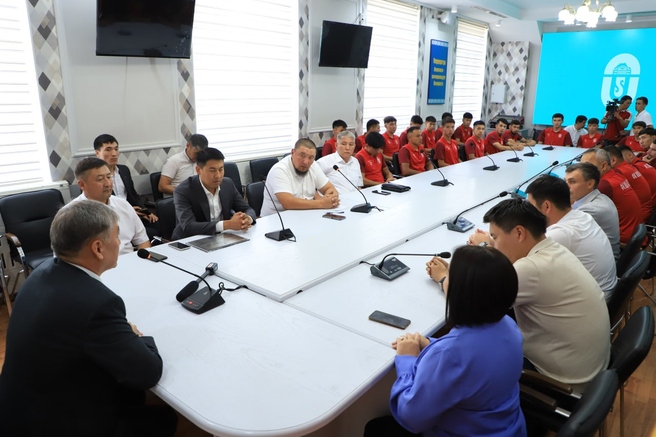 На встрече также приняли участие исполнительный директор профессиональной футбольной лиги Кыргызстана Канат Асенов, председатель Ошской футбольной ассоциации Нурсултан Кадырбеков, тренеры и члены команды. Руководители футбола выразилислова благодарности в адрес ректора за вклад в развитие кыргызского футбола и вручили благодарственное письмо. Главный тренер команды “ОшМУ-Алдиер” Айбек Сулайманов отметил, что руководство университета оказывает посильную поддержку развитию университетского спорта и является единственным вузом в стране, имеющий профессиональный футбольный клуб.