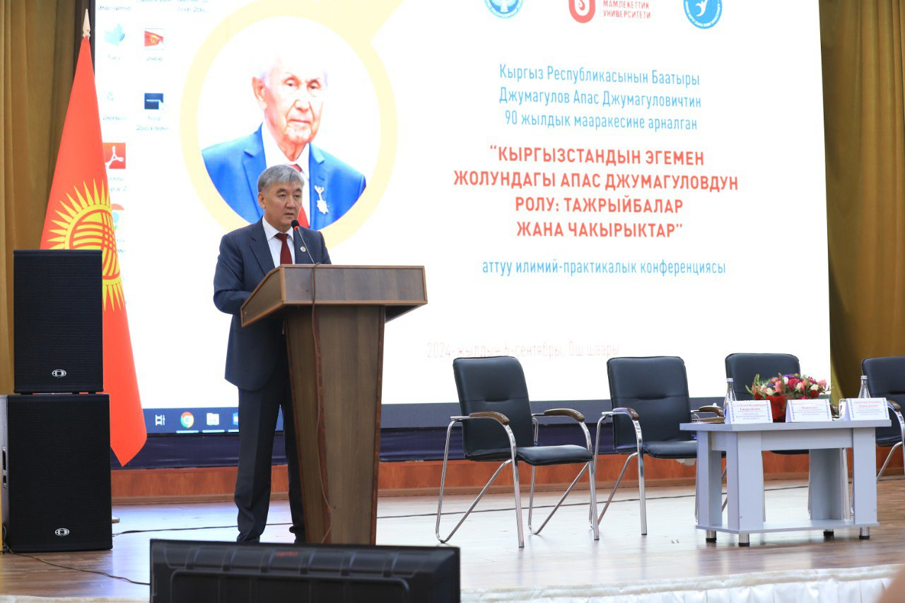 6 сентября 2024 года в большом актовом зале ОшГУ прошла научно-практическая конференция «Роль Апаса Джумагулова на пути к суверенитету Кыргызстана: опыт и вызовы», посвященная 90—летию видного государственного и политического деятеля, Героя Кыргызской Республики Апаса Джумагулова.