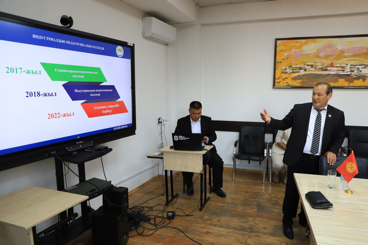 На встрече директор индустриально-педагогического колледжа Олжобай Шаимкулов подробно проинформировал гостей о деятельности центра. Омурзакова отметила о целенаправленной работе центра и обсудила дальнейшую работу по другим проектам. Наряду с этим гости вручили призы студентам, победившим в конкурсе "Мой колледж".