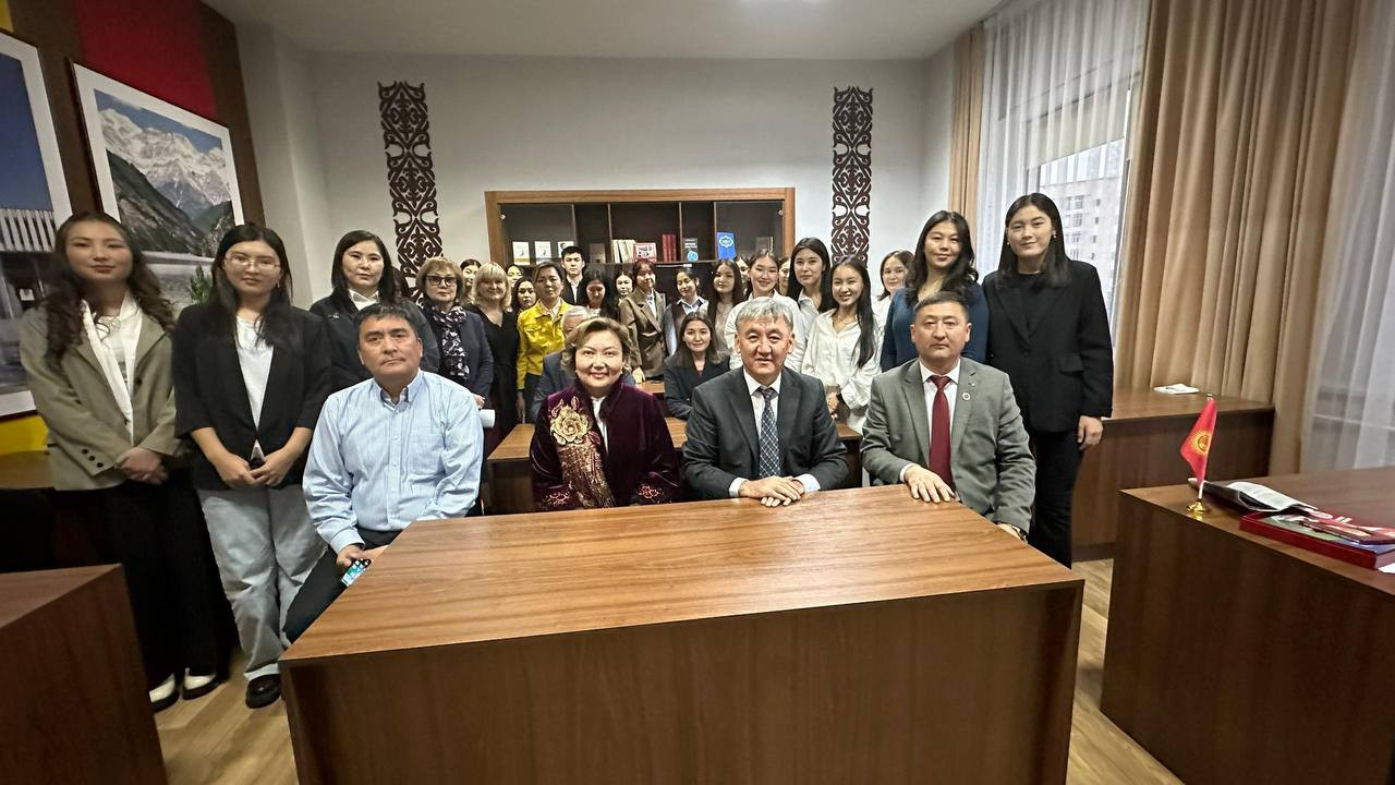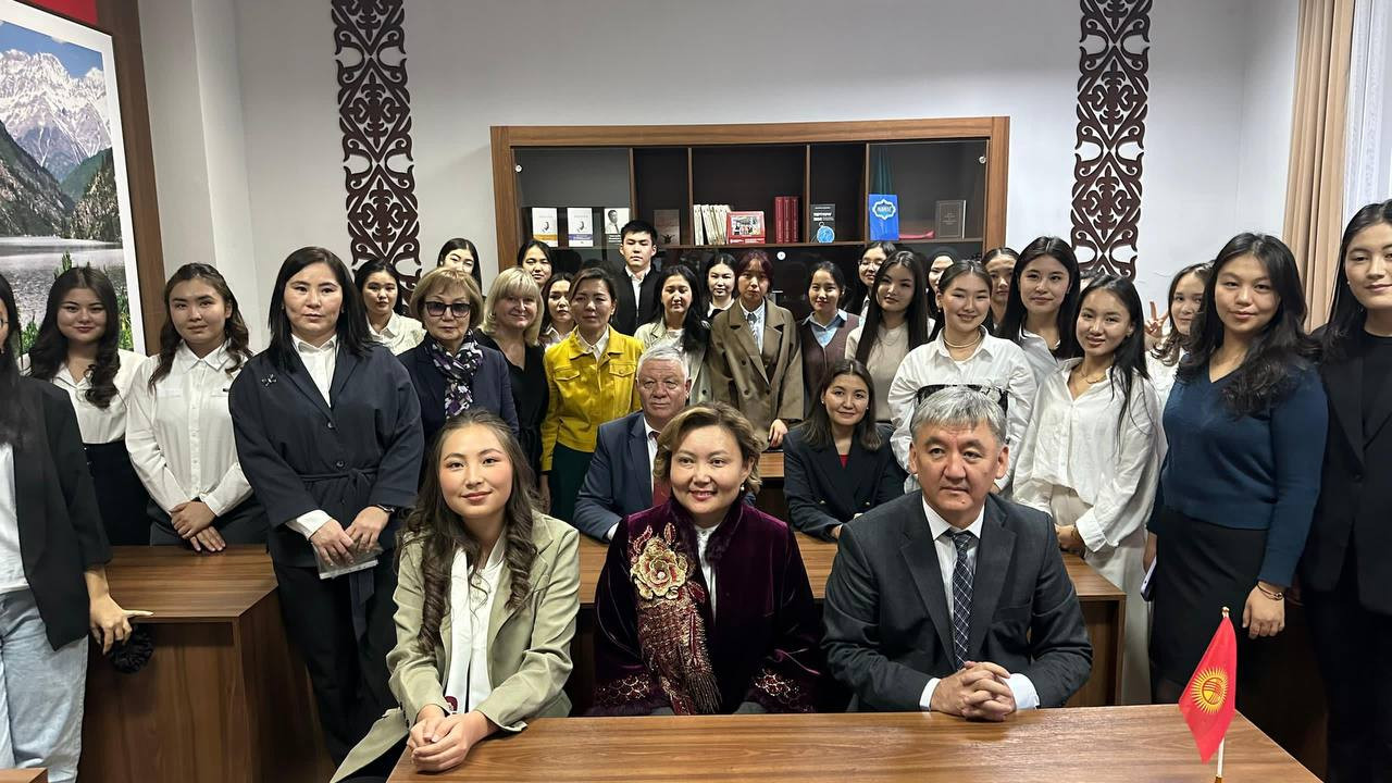 Делегация ОшГУ во главе с ректором Кожобековым К.Г. также посетила Евразийский национальный университет им. Л.Н. Гумилева, встретилась с руководством университета, профессорско-преподавательским составом и студентами в центре кыргызского языка и культуры, где представили нового директора центра Тотобаеву Айсулуу Джолдошалыевну.