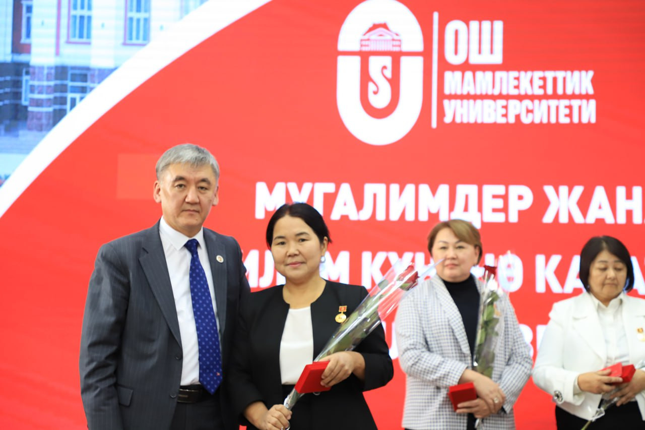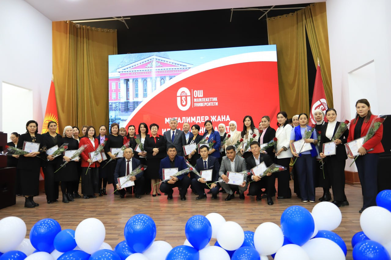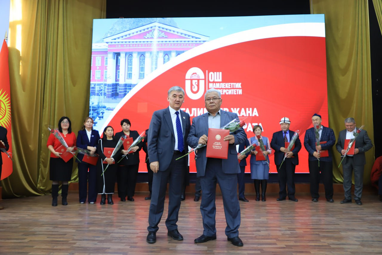 Группе профессорско-преподавательского состава, плодотворно работающей в университете, были вручены нагрудные знаки Министерства образования и науки "Отличник образования", “Отличник науки", почетные грамоты местых органов власти, Министерства образования и науки, ОшГУ, нагрудный знак “Заслуженный работник ОшГУ”, денежные премии и благодарственные письма.