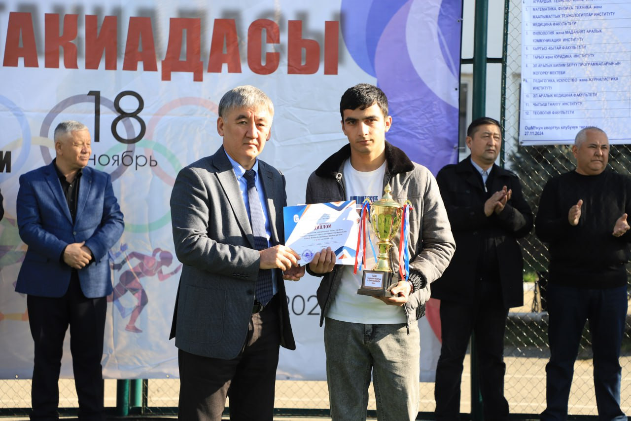 Сегодня, 27 ноября, в ОшГУ завершилась университетская спартакиада. На церемонии награждения приняли участие ректор ОшГУ Кудайберди Кожобеков, председатель профессионального объединения Абсамат Саттаров, проректор по внешним связям Курсантбек Аттокуров.