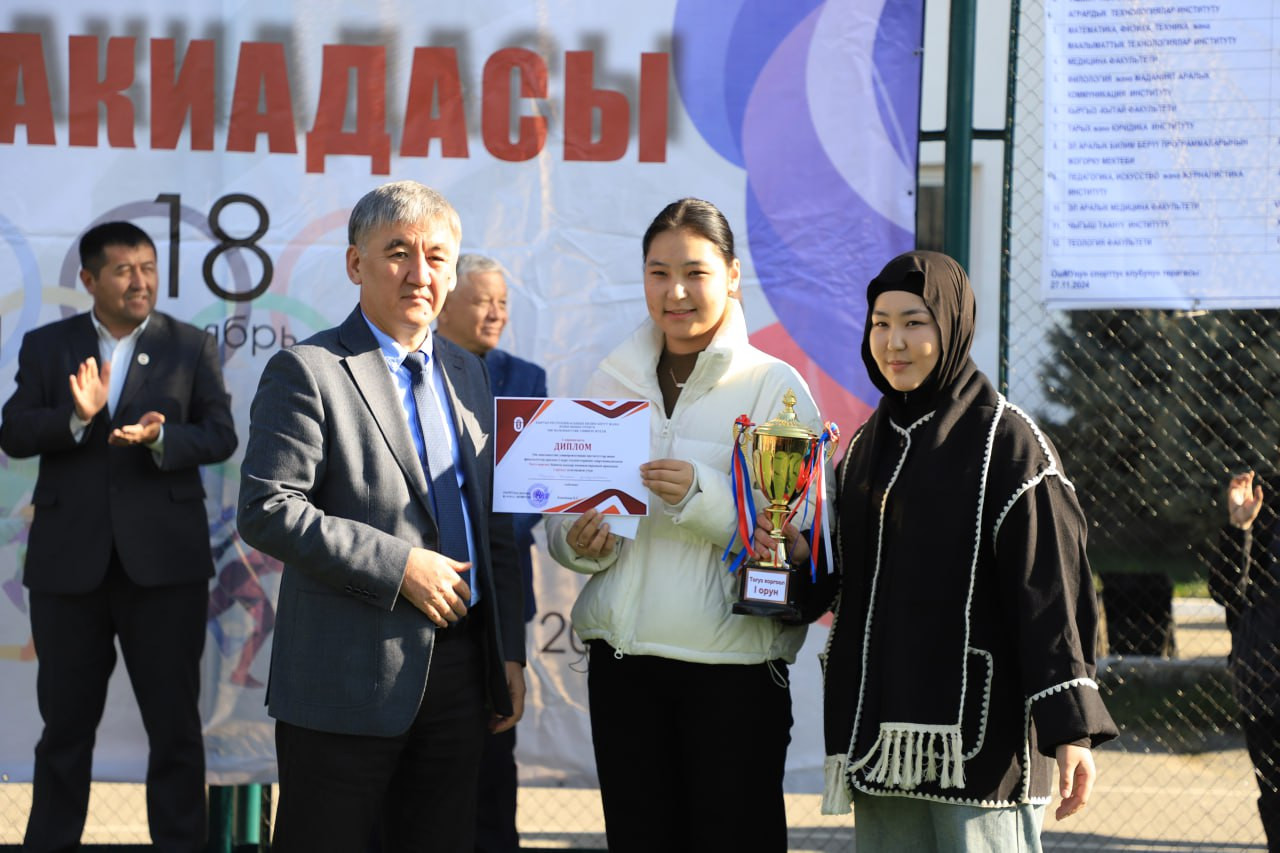Соревнованиея проводились среди первокурсников по восьми видам спорта - волейболу, мини-футболу, баскетболу, легкой атлетике, шахматам, тогуз корголу, настольному теннису и ордо. По итогам первое место заняла команда Института экономики, бизнеса и менеджмента, второе - команда Института естествознания, физической культуры, туризма и аграрных технологий. Студенты Института математики, физики, техники и информационных технологий заняли третье место. Победителям были вручены дипломы, кубки, денежные призы.