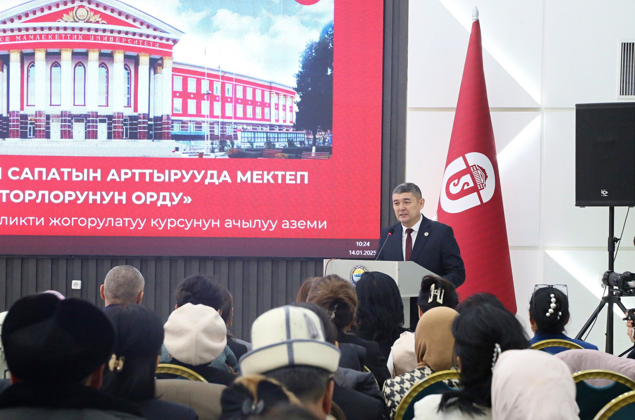 Сегодня, 14 января, в городе Ош начались учебные курсы по повышению профессионального мастерства учителей и руководителей образовательных учреждений. Данная инициатива реализуется на основе соглашения ОшГУ и Ошского городского управления образования. В связи с этим в ОшГУ прошло заседание с участием мэра города Ош Бакытбека Жетигенова, начальника городского управления образования Салтанат Амановой, проректора по учебной работе ОшГУ Руслана Арапбаева и директоров школ. На нем обсуждались вопросы повышения уровня знаний учащихся. Также была представлена информация о роли директоров школ в повышении качества образования, по анализу проведенного общереспубликанского тестирования на 2023-2024 учебный год.