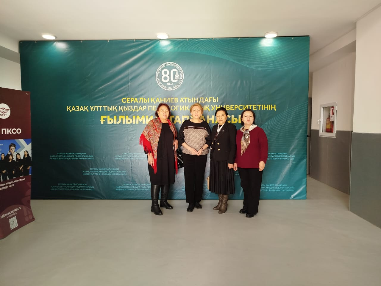 Доцент межфакультетской кафедры кыргызского языка Института филологии и межкультурной коммуникации Фарида Алиева, старшие преподаватели Гульнара Толубаева и Уркуя Мураталиева 20-22 января посетили Казахский национальный женский педагогический университет. Они ознакомились с библиотечным фондом и историческим музеем Казахского национального женского педагогического университета. Кроме того, состоялась встреча с коллективом кафедры теории и методики казахского языкознания и литературы. Стороны обсудили учебные программы, учебно-методические материалы и направления сотрудничества с системой «Казтест».
