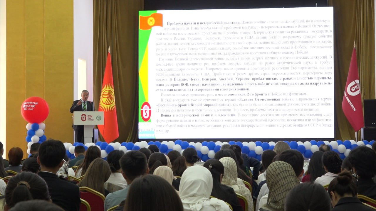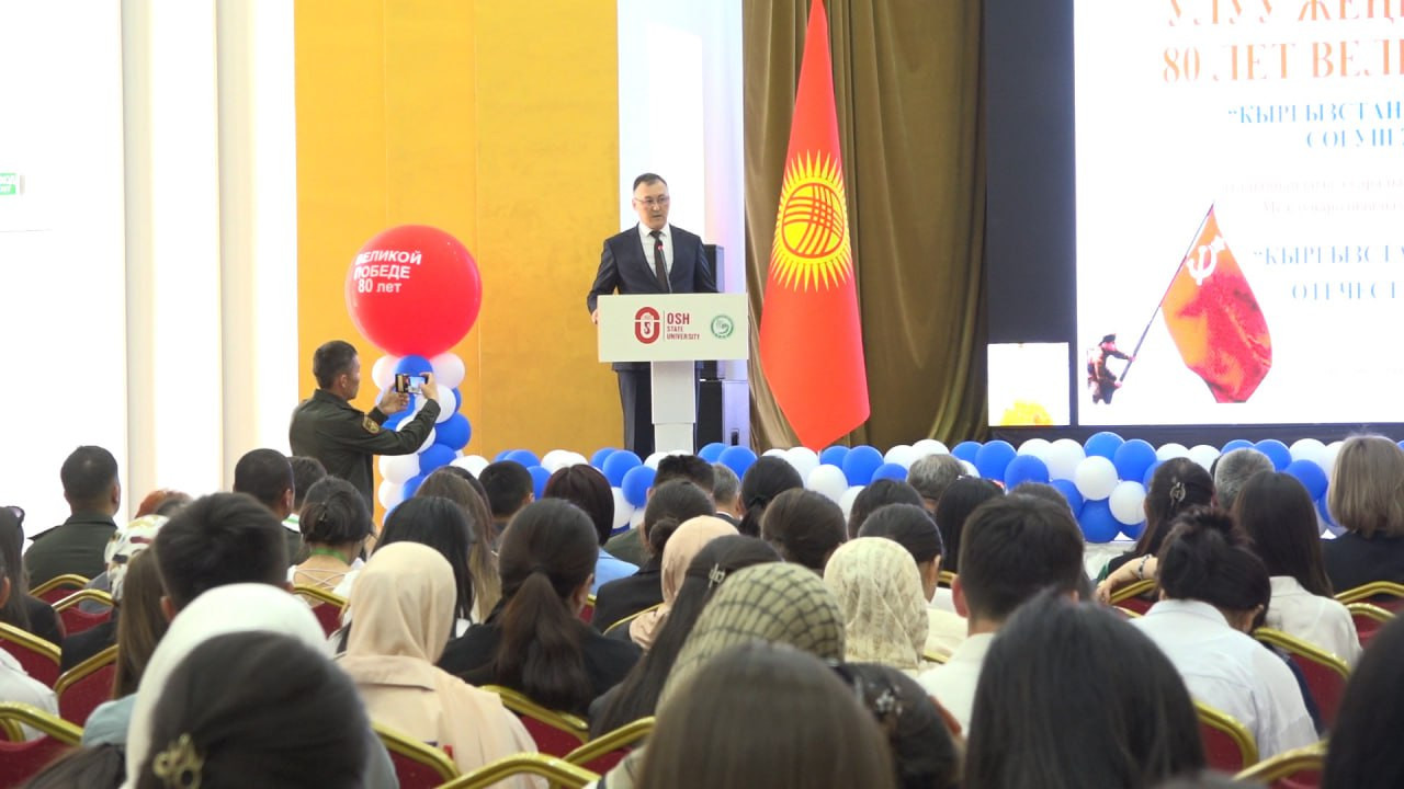 По случаю 80-летия Великой Победы сегодня, 29 апреля, в Ошском государственном университете прошла международная научно-практическая конференция «Кыргызстан в годы Великой Отечественной войны», организованное Институтом востоковедения Ошского государственного университета совместно с Генеральным штабом Министерства обороны и Министерством образования и науки КР.