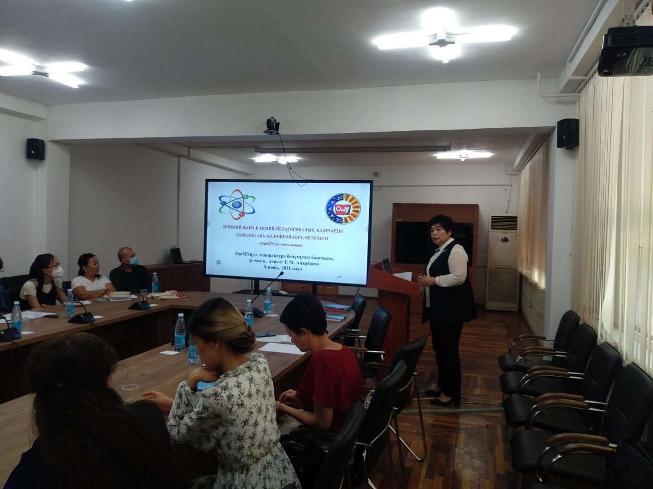 Руководитель отдела аспираантуры ОшГУ, доцент Гүлжамал Анарбаева приняла участие в семинаре "Актуальные проблемы подготовки научных и научно-педагогических кадров", организованном МОН КР и выступила с докладом "Подготовка научных и научно-педагогических кадров: состояние, проблемы, перспективы" . Оратор поделилась опытом работы аспирантуры в данном аспекте, отметила проводимую работу, достижения, количественный рост обучающихся и успеных защит диссертаций по окончании аспирантуры; высказала свои предложения и рекомендации по улучшению работы; подчеркнула, что подготовка научных и научно-педагогических кадров в ОшГУ является одним из стратегических направлений.