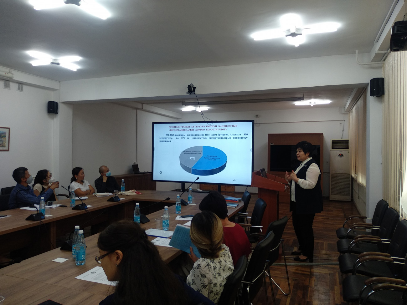 Гүлжамал Анарбаева приняла участие и в работе рабочей группы при МОН КР по вводу изменений и дополнений в нормативные акты по научной работе, работе аспирантур и докторантур.
