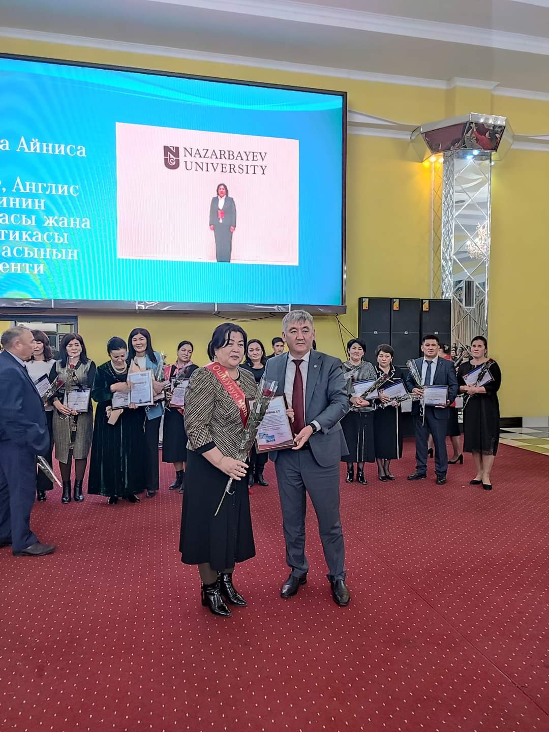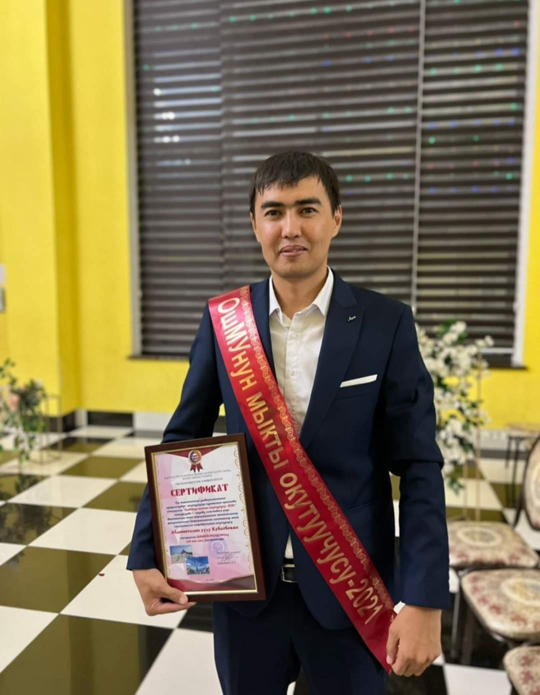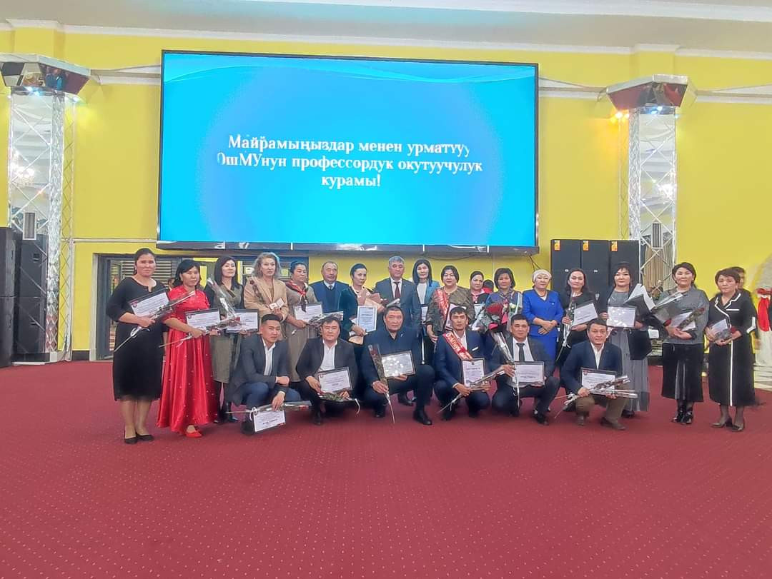 На торжестве, посвященном дню учителя были награждены победители и призеры профессиональных конкурсов преподавателей ОшГУ. Первое место в номинации "Лучший преподаватель-2021" занял преподаватель факультета МИТ Абдимиталип уулу Кубатбек, который улостоен путевки в Дубай и 40 тыс. сомов. Второе место занял доцент межфакультетской кафедры физической культуры №2 Бакытбек Кулуев и третье место - преподаватель психологии факультета педагогики, психологии и физической культуры Эмил Сагынбаев.