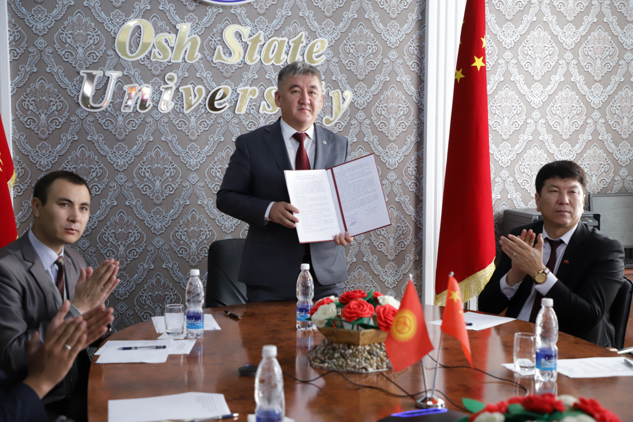 Ректор ОшГУ Кудайберди Кожобеков поздравил китайских коллег с 70-летием университета и отметил большой вклад китайского вуза в дело просвещения и образования малых народов Китая.