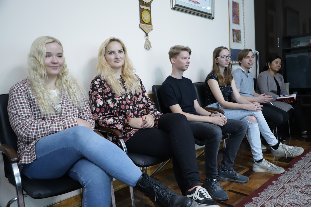 Гости отметили, что знакомятся с культурой Кыргызстана, поделились своими впечатлениями об университете, учебе, о новых знакомствах и друзьях. Напомним, что 10 студентов и 2 магистранта прибыли в Ошгу на факультет международных отношений в рамках двустороннего договора о сотрудничестве между вузами.