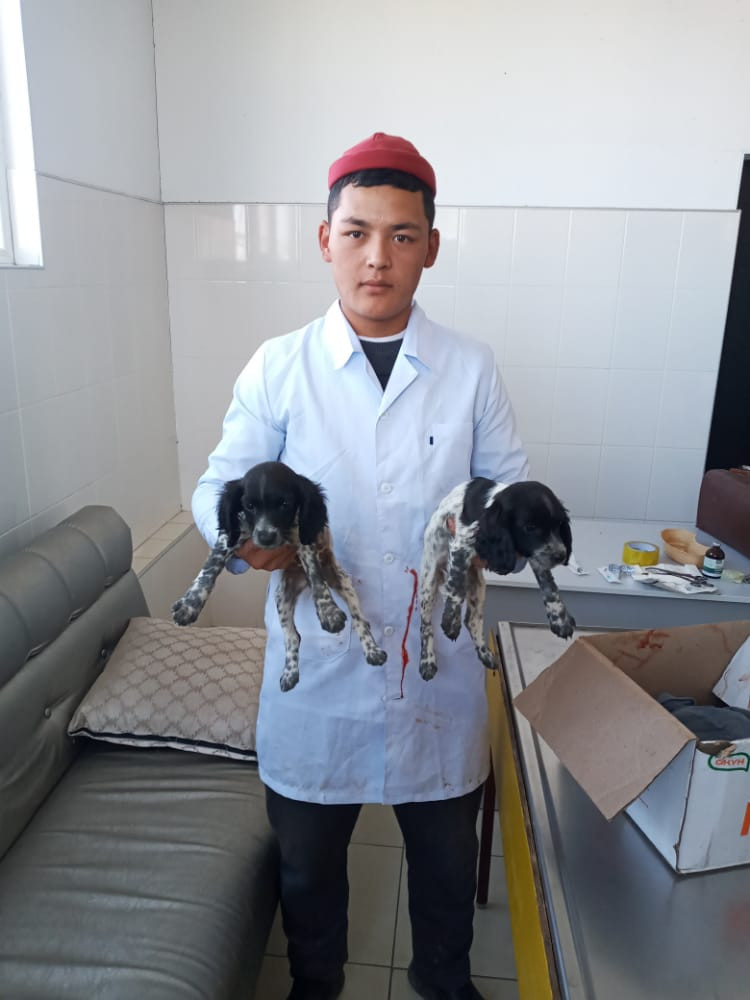 Студенты 2 курса инновационного колледжа STEM ОшГУ Эрболот Рыскулбеков, Таалайбек уулу Барсбек проходят производственную практику на базе частной ветеринарной клиники "Эковет" в городе Каракол Иссык-Кульской области.