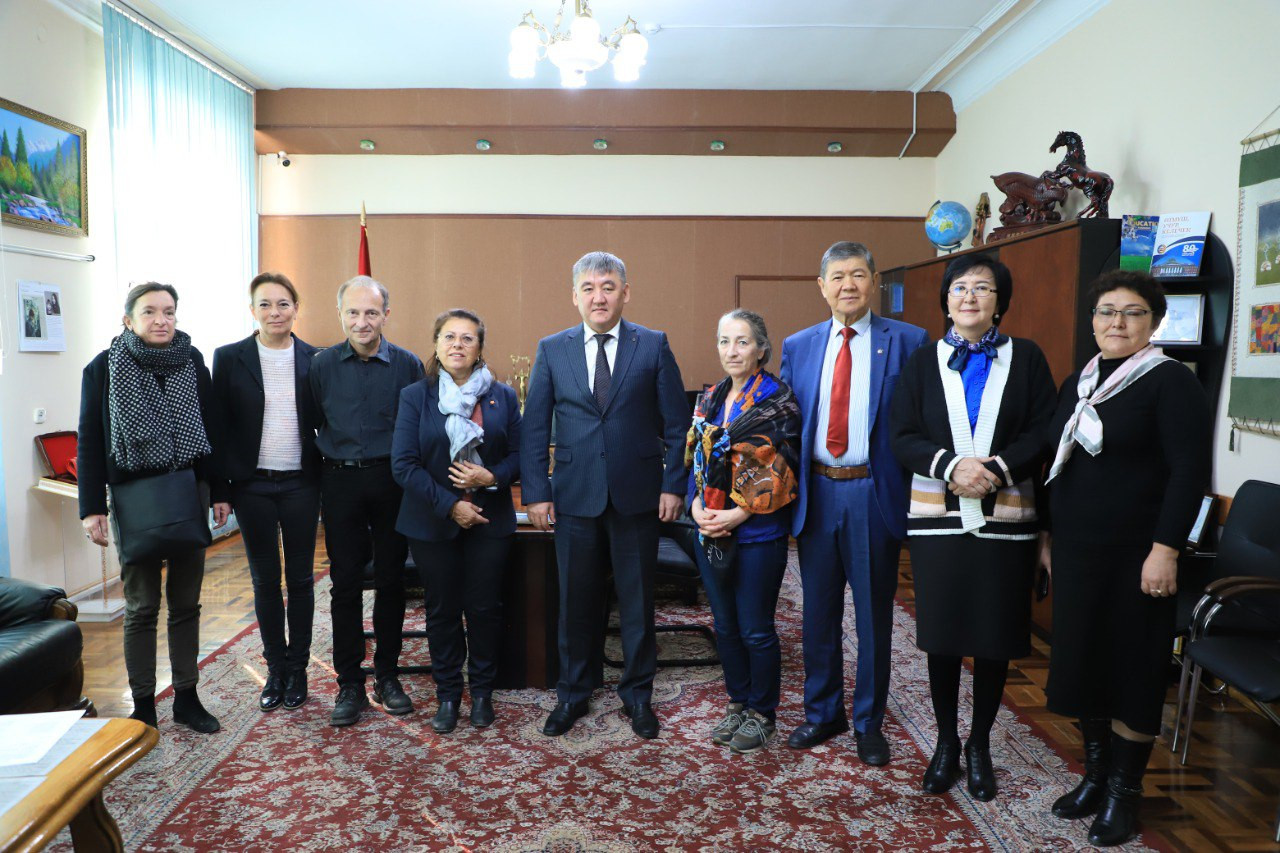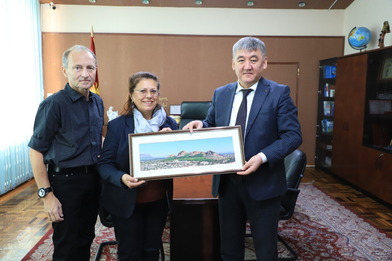 В ОшГУ прибыла группа преподавателей французского университета Пуатье во главе с ответственным представителем по международным связям университета господином Филиппом Рогжоном. Гости встретились с ректором Кудаберди Кожобековым и вместе с руководителем департамента междунардных связей ОшГУ Абдыганы Абдувалиевым обсудили вопросы сотрудничества.