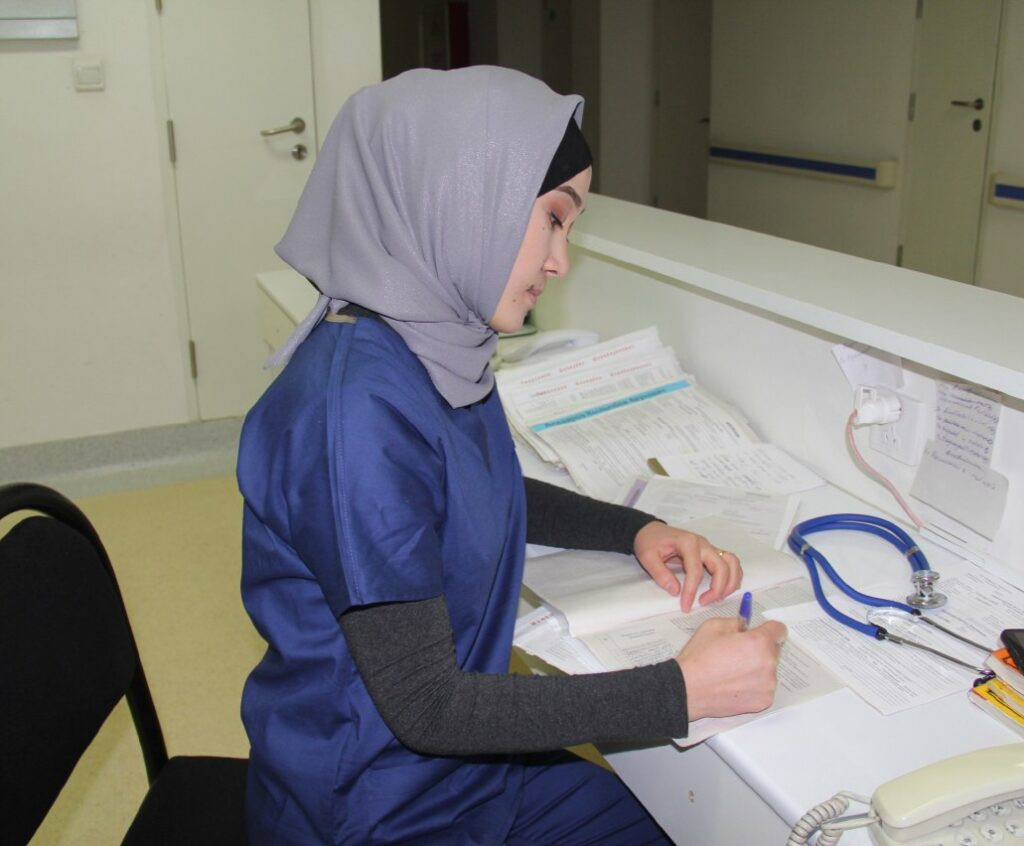 Ординатор 3 года Айчурок Азимова проходит стажировку в отделении терапии: