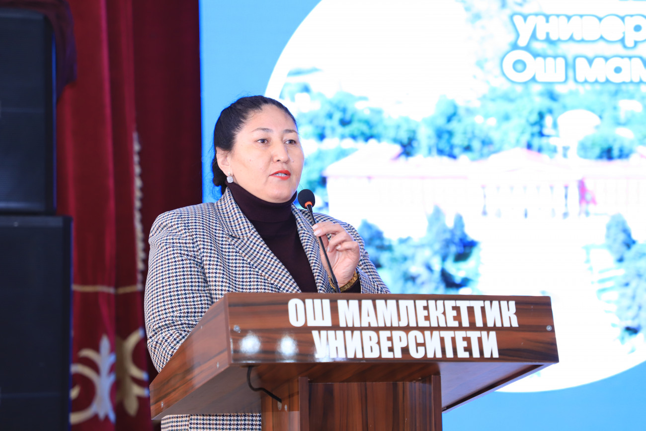 Встреча с преподавателями Кыргызско-Турецкого университета "Манас" продолжилась в зале заседания, где проректор ОшГУ по государственному языку и социальной работе, доцент Мастурахан Шарипова проинформировала участников о проводимой работе. О системе обучения языку в бишкекском вузе ознакомила руководитель делегации, заместитель главы высшей школы иностранных языков университета "Манас" Салия Вайсканова.