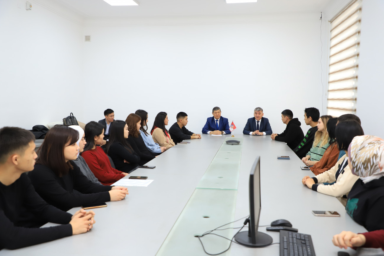 Ректор ОшГУ Кудайберди Кожобеков и директор департамента международных связей Абдыганы Абдувалиев встретились со студентами, отправляющимися на обучение в университет Кадис (Испания), университет Марбург (Германия) и Евразийский национальный университет имени Гумилева (Казахстан) в рамках академичесмкой мобильности.