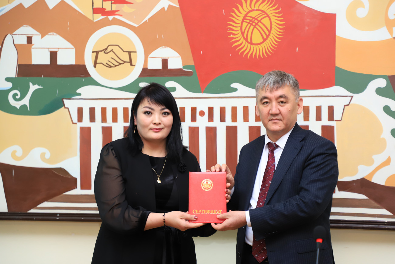 На церемонии вручения сертификатов благодарственные письма ректора КНУ за вклад в развитие сотрудничества двух вузов были вручены ректору ОшГУ Кудайберди Кожобекову и доценту кафедры гражданского права и процесса Ж. Айтбаевой.