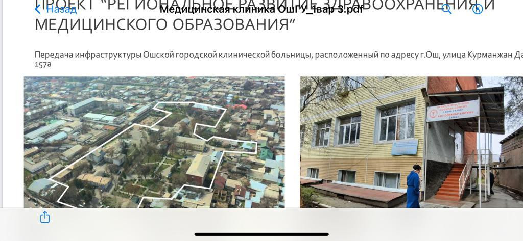 С учетом обсуждений по итогам совещания подписан Указ Президента «О мерах по улучшению деятельности Ошской городской клинической больницы», а также распоряжение Кабинета Министров, согласно которым ОшГУ переходит здания Ошской городской клинической больницы.