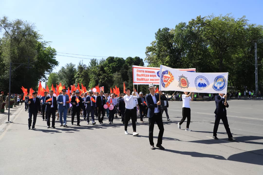 На городской площади состоялась праздничная демонстрация в честь 1 мая - Дня международной солидарности трудящихся, на которой активное участие принял коллектив Ошского государственного университета.