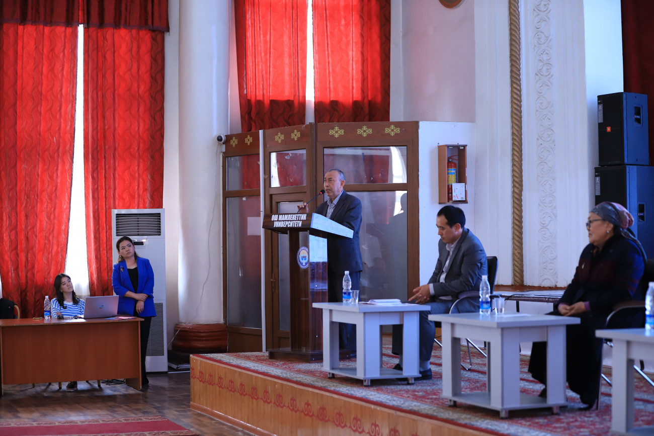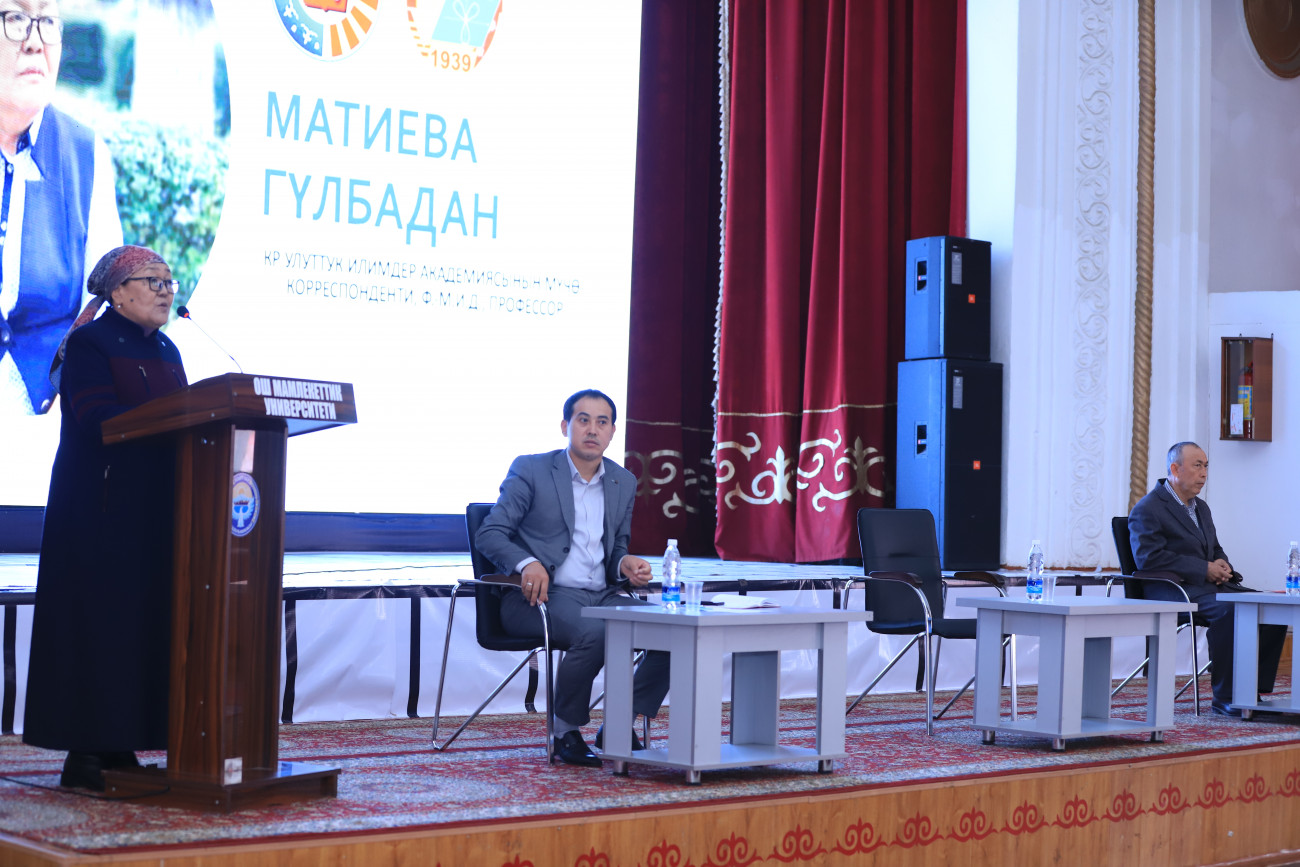 На факультете математики и информационных технологий прошла мотивационная встреча "Сколько знаешь языков - столько раз ты человек". Гостями встречи стали член-корреспондент НАН КР, доктор физико-математических наук, профессор Гулбадан Матиева и доктор физико-математических наук, профессор Адахимжан Сопуев.