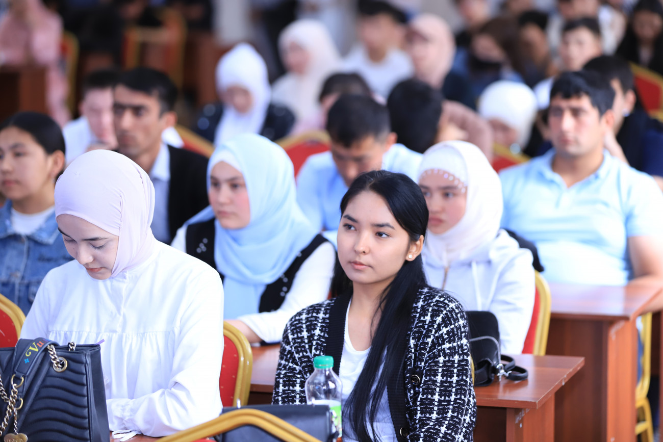 Профессор Гулбадан Матиева посоветовала студентам, что прежде всего необходимо освоить родной язык, национальную культуру, обычаи и традиции, затем браться за другие языки. призвала молодежь учиться, овладеть знаниями, быть воспитанными. Профессор Адахимжан Сопуев отметил, что знание языков - это ключь к успеху. Студенты обратились к гостям со множеством вопросов, на которые получили интересные ответы.