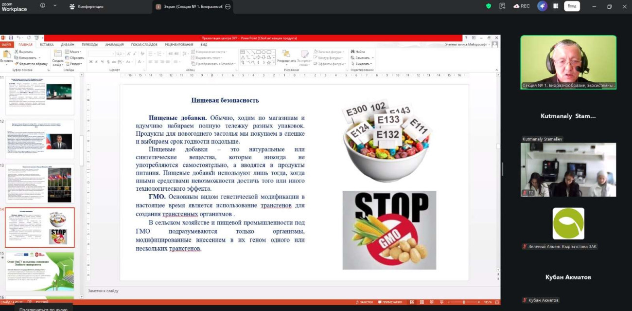 Etkinlikte Doçent Abdimannap Abdıkaarov, “Yeşil Üniversite: Çevresel Zorluklar, Sürdürülebilir Kalkınma ve Ortaklığın Rolü” başlıklı bir sunum yaptı. Sunumunda güncel çevre sorunlarına değinerek, bu sorunların çözümünde Oş Devlet Üniversitesi ve GREENKG projesi tarafından yürütülen çalışmalar hakkında bilgi verdi.