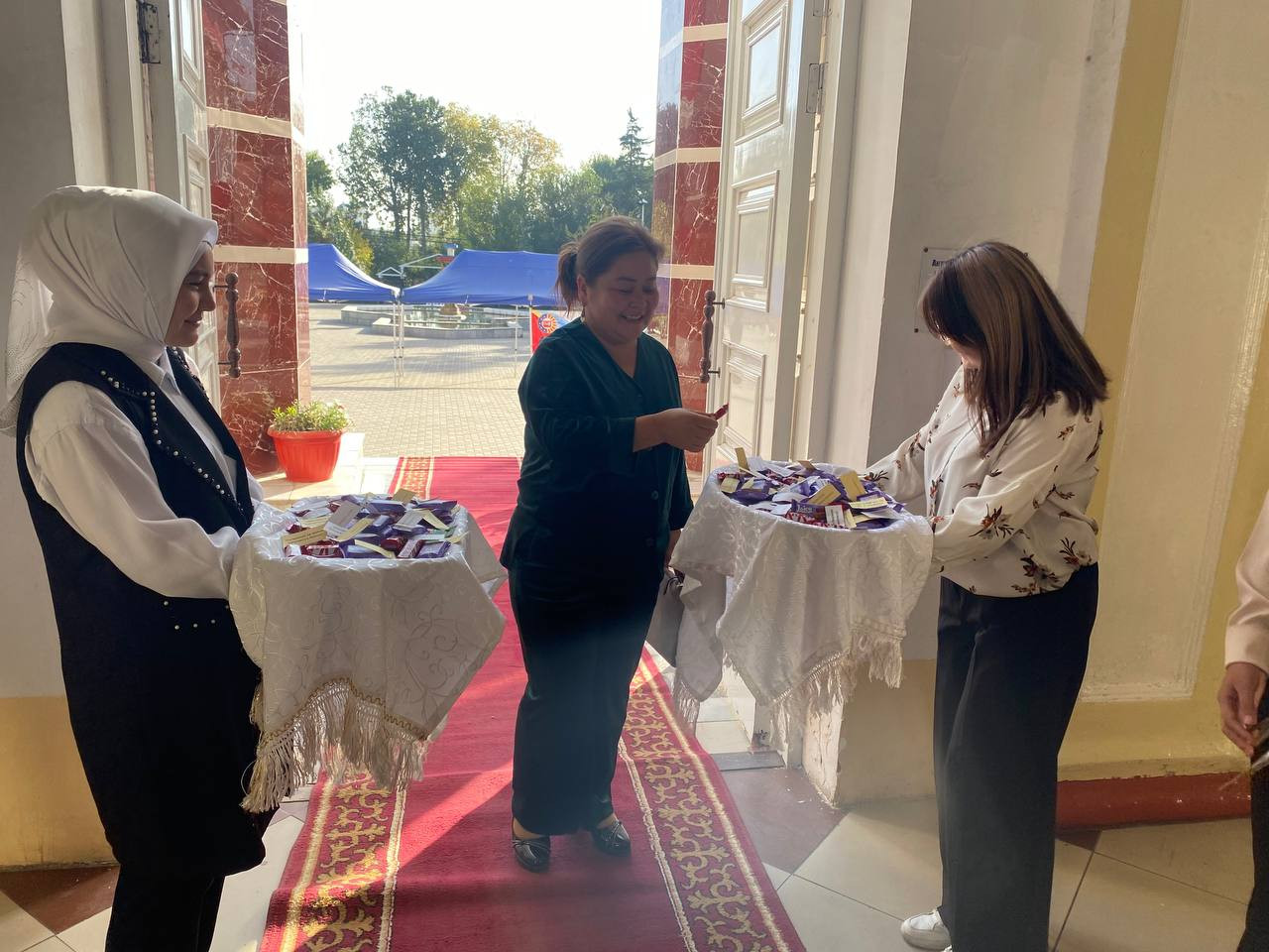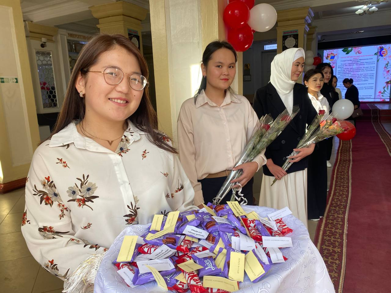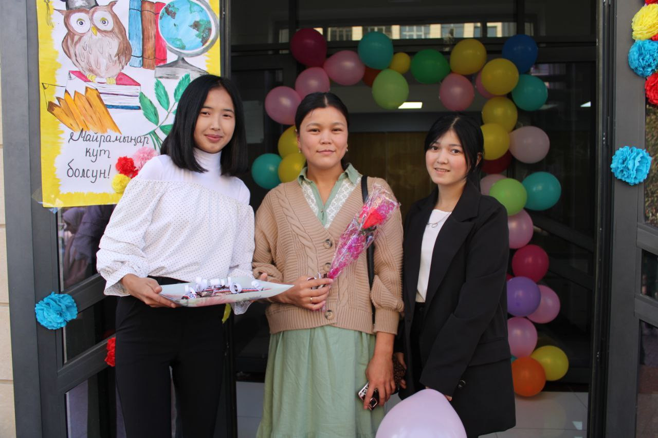 5-октябрь билим берүү кызматкерлеринин кесиптик майрамы – Мугалимдер күнү. Майрамга карата ОшМУнун факультет, коллеждеринин студенттери майрам ээлерин эрте менен мугалимдерди даңктаган ырлар, шириндиктер, гүлдөр менен тосуп алышты.