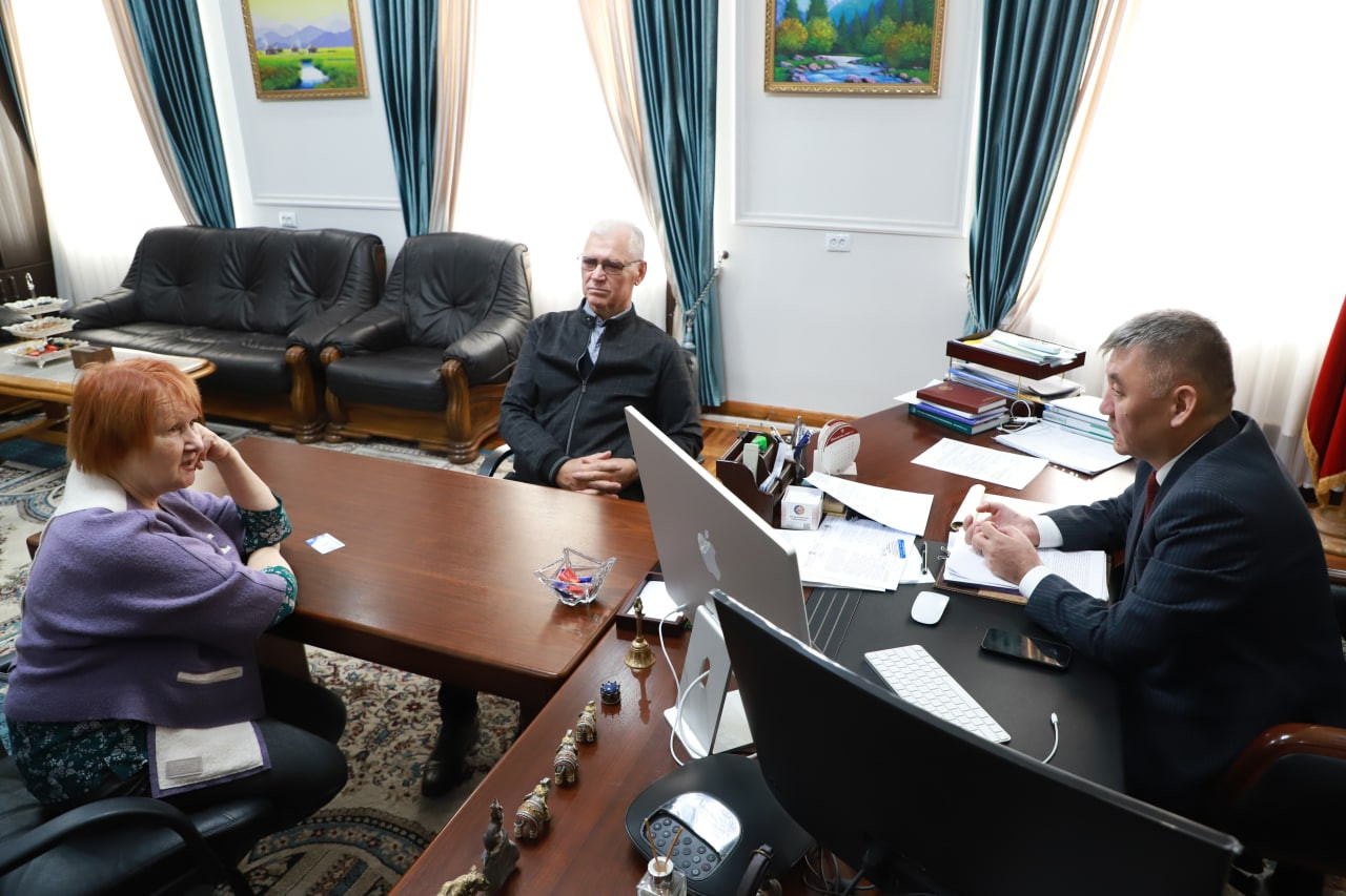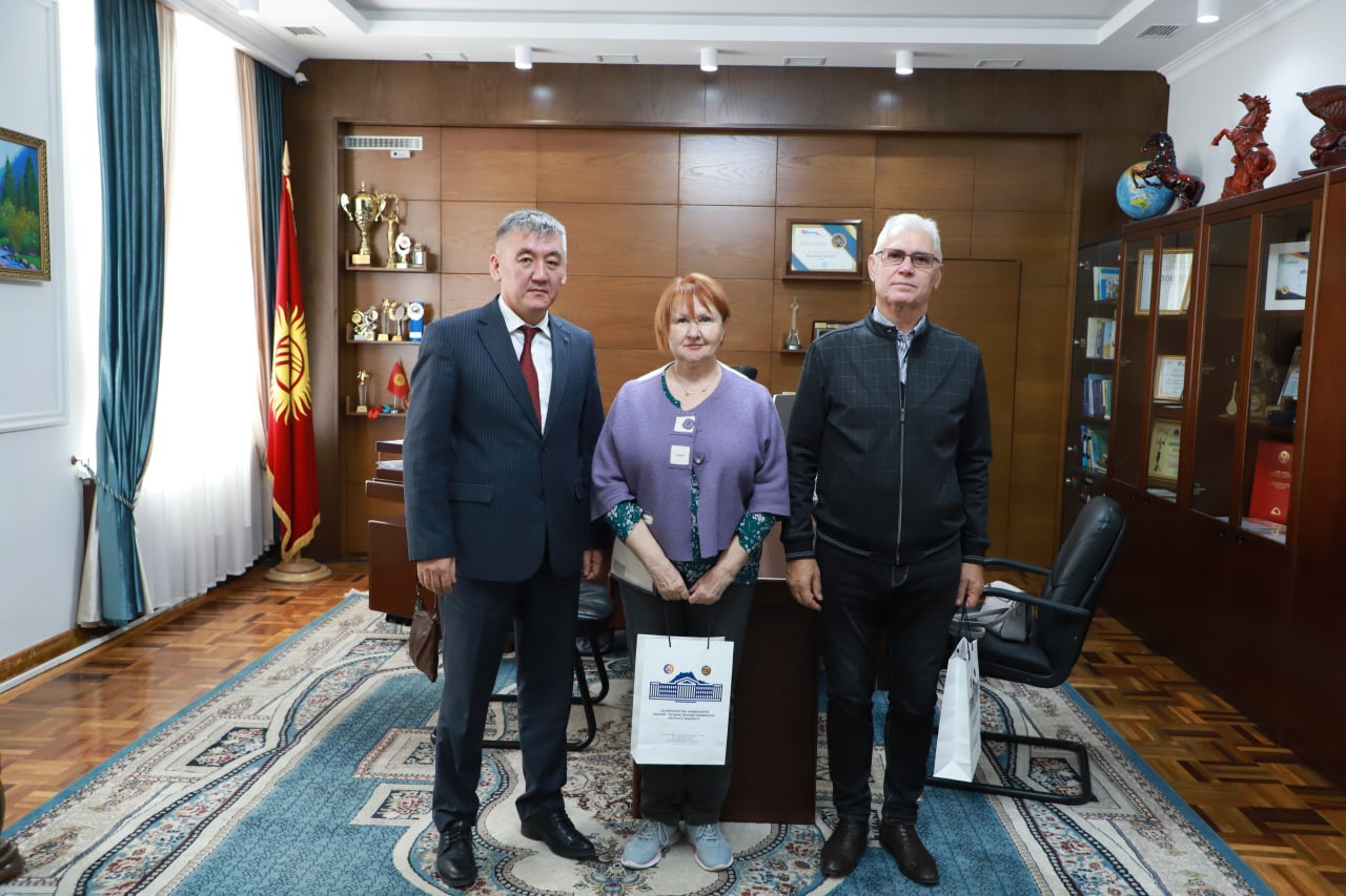 Алар ректор К. Кожобеков менен жолугуп, баарлашты. Дүйнөлүк инвестициялык компаниянын жетечиси В.Ф.Славина студенттердин стартап борборлору менен таанышып, алдыда бизнес идеяларды ишке ашыруу үчүн инвесторлорду тартып кызматташууга кызыктар экенин билдирди.