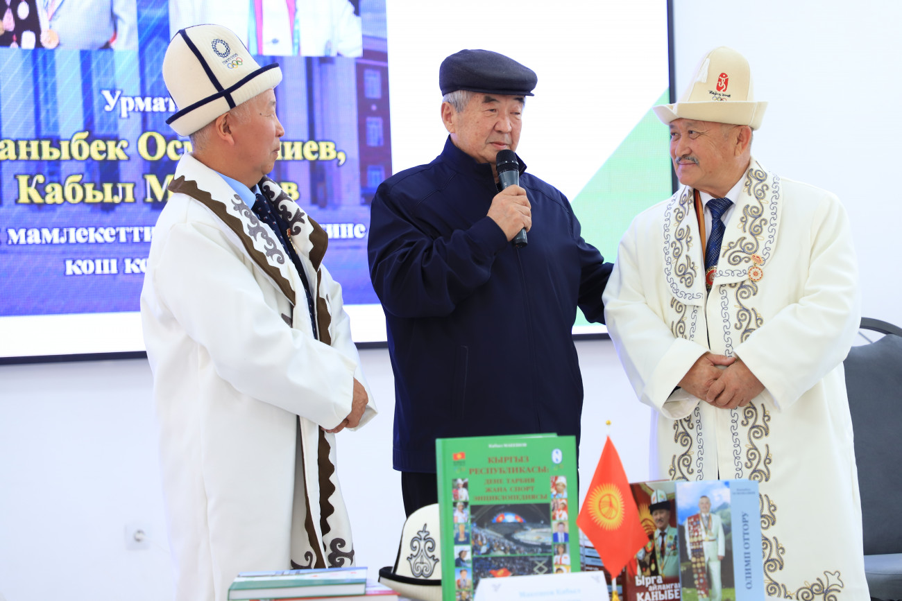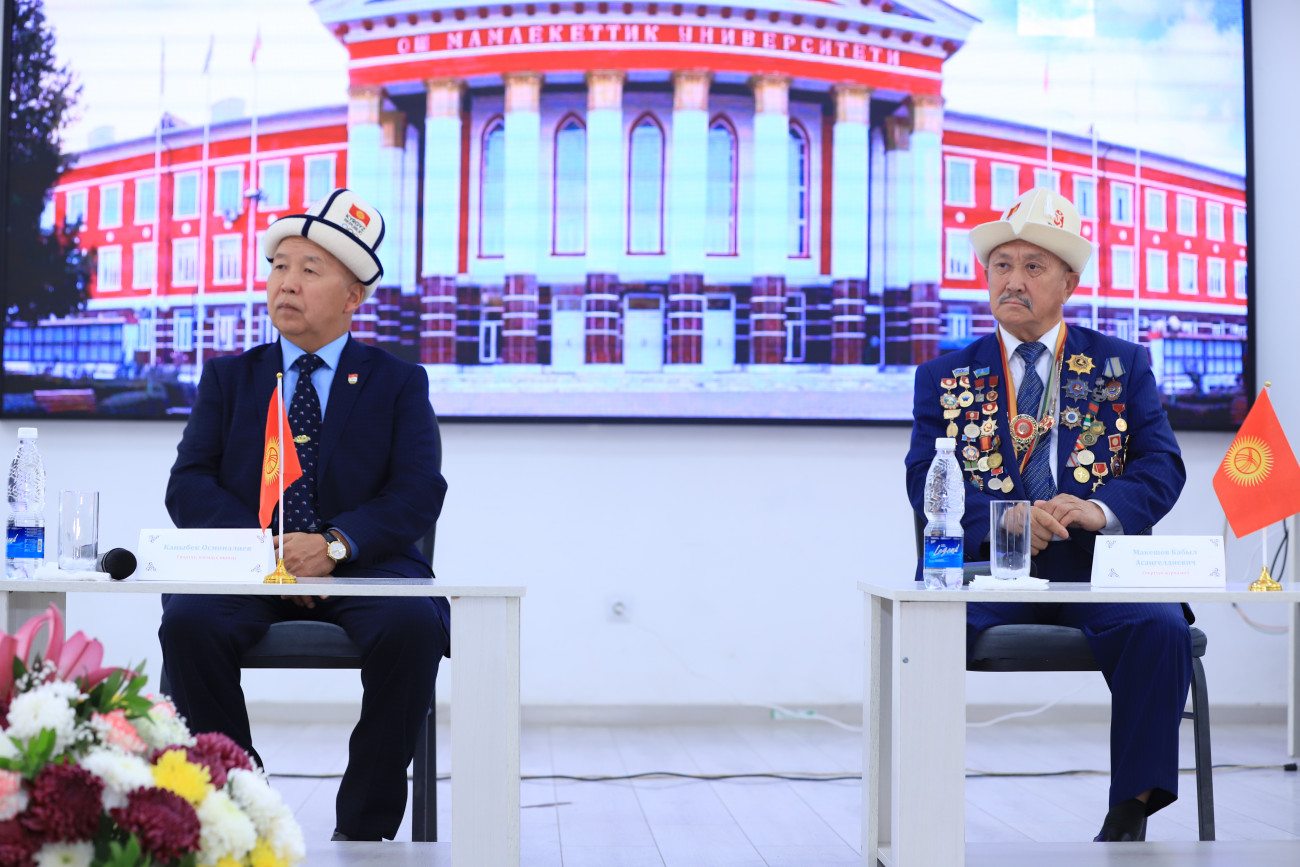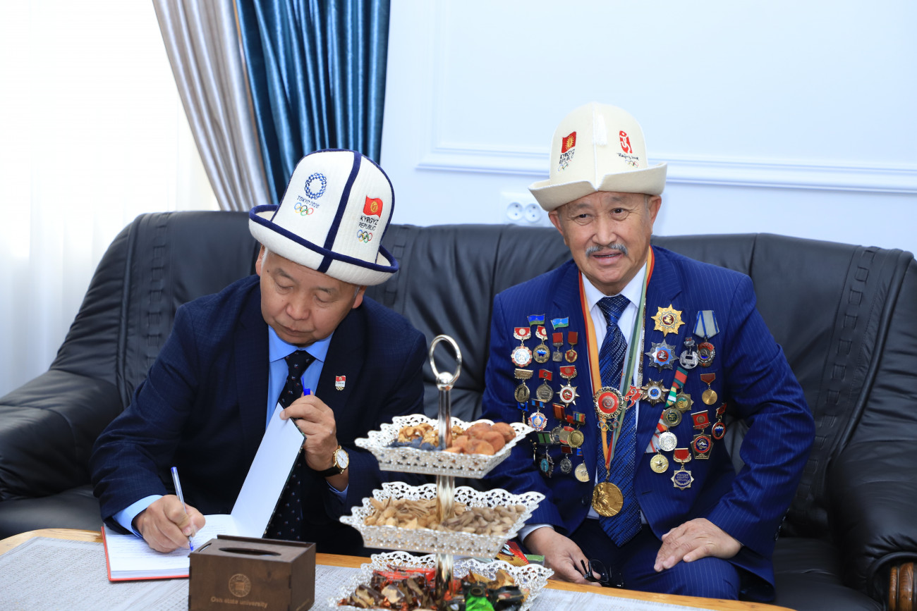Бүгүн, 28-октябрда Москва шаарында өткөн 22-Жайкы Олимпиада Оюндарынын чемпиону жана оор атлетика боюнча дүйнөнүн 4 жолку чемпиону болгон туңгуч кыргыз спортчусу, коомдук ишмер Каныбек Осмоналиев жана спорт боюнча бир нече китептердин автору, журналист, публицист Кабыл Макешов ОшМУга келишти.