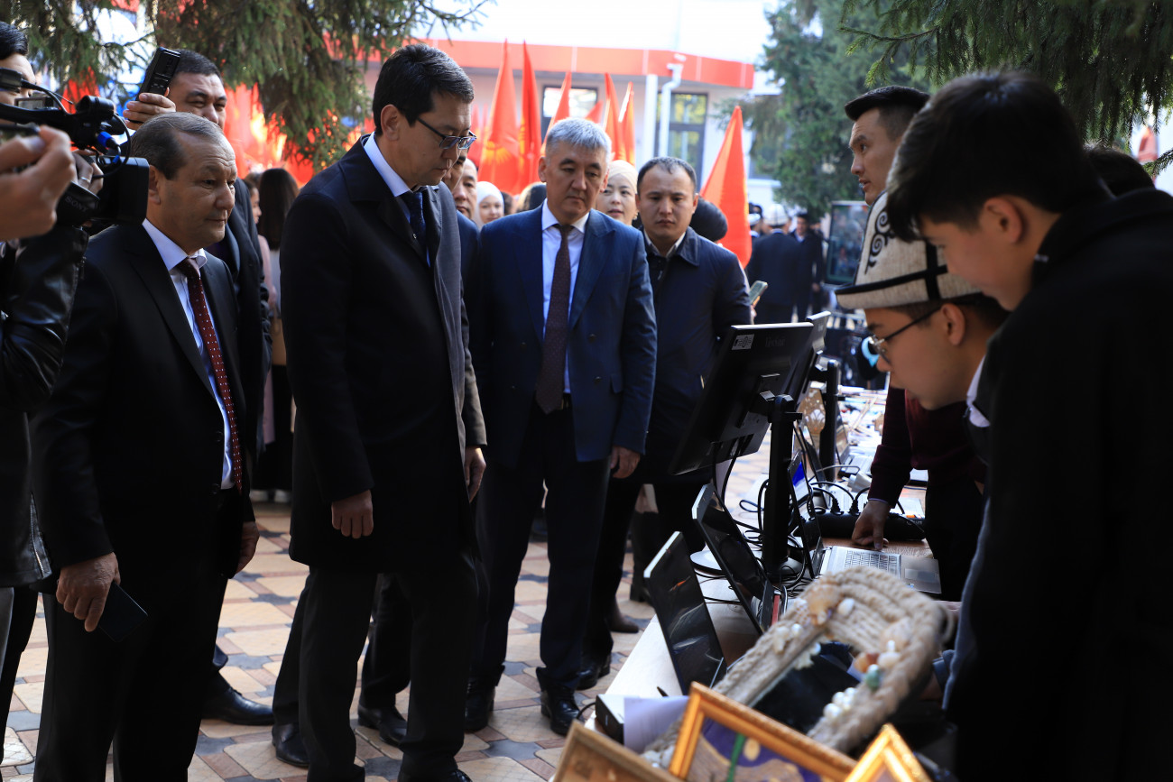 “Долбоорго кирген эки адистиктин мисалында окууга киргенден баштап, ишке орноштурууга чейин жакшы схеманы көрсөтө турган моделди даярдап жатабыз. Бүгүн окуу жайда теория менен практиканы бирге алып кете турган атайын өндүрүш кошо иштеп жатат. Мында тигүү, программалоо адистиктеринде билим алган биздин студенттер бир эле мезгилде окуу-өндүрүш комплексинде, окуу менен катар практикалык көндүмдөрдү айкалыштыра алат. Анда даярдалган өндүрүштөр ОшМУнун фирмалык дүкөнүнө сатыкка чыгат. Бул жалпы аймак үчүн мыкты борбор болот деп ишенем”,-деди ОшМУнун ректору Кудайберди Кожобеков.