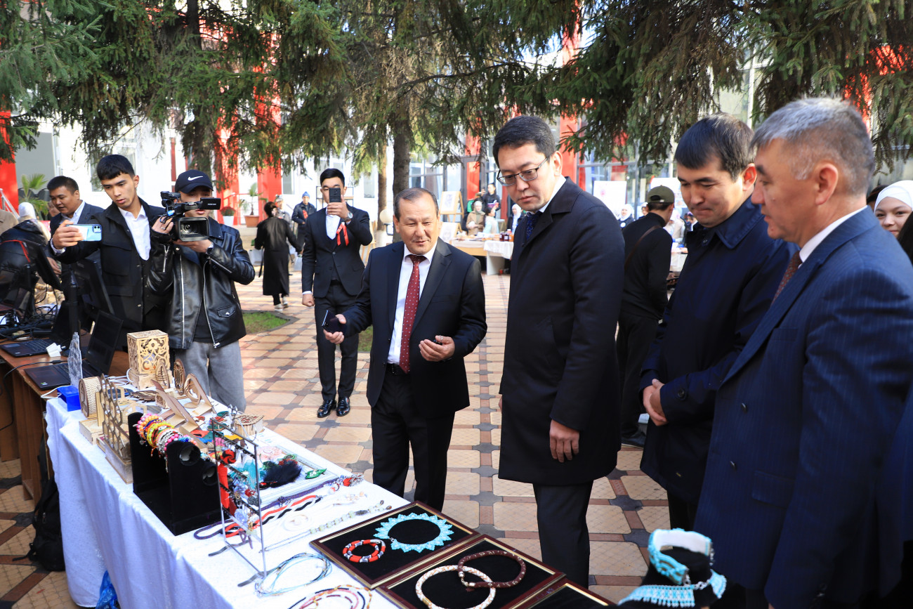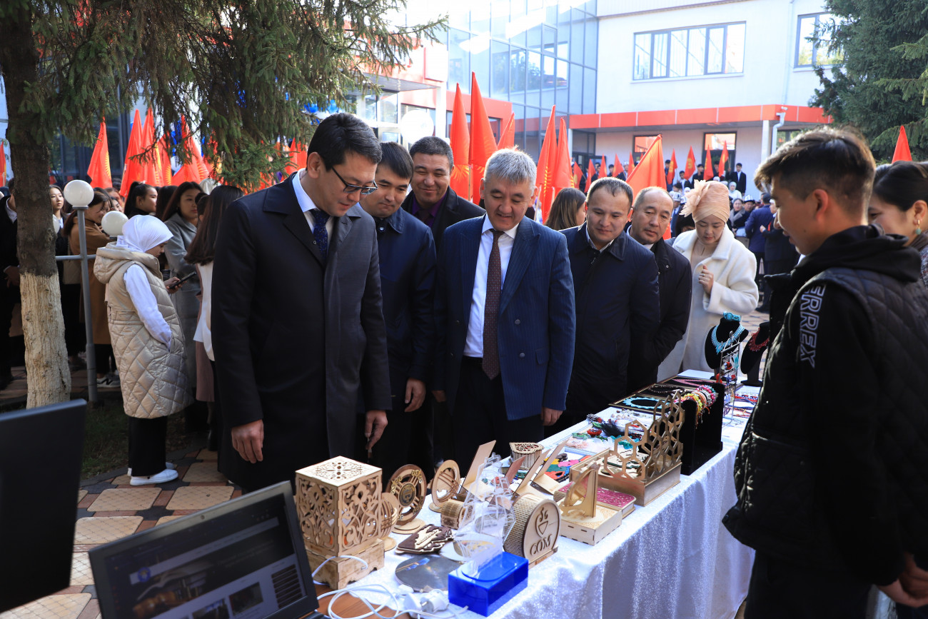 Иш-чаранын 2-бөлүгүндө колледжде пилоттук негизде окутулган ишкердүүлүктүн негиздери курсунун алкагында студенттер кол өнөрчүлүк, кулинария багытында өздөрү жасаган эмгектерин жарманкеге коюшту.