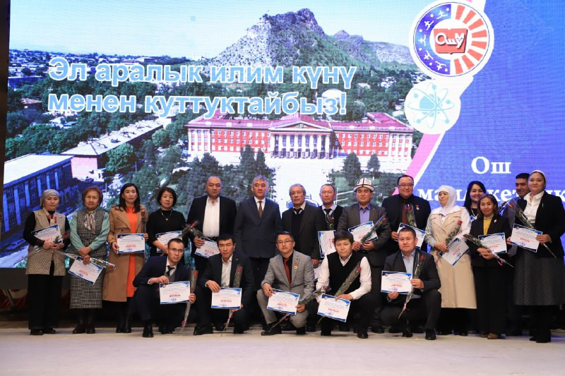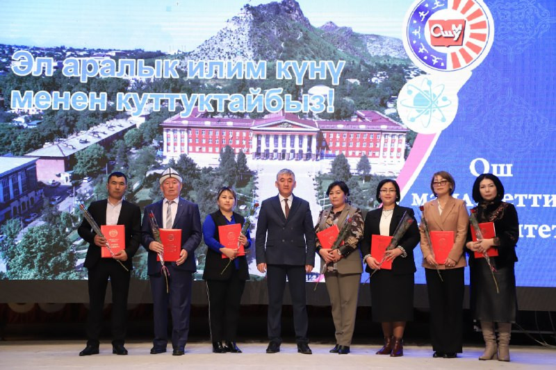 Майрамдык иш-чаранын алкагында университетте үзүрлүү эмгектенип жаткан профессордук-окутуучулук курамдын бир тобуна Билим берүү жана илим министрлигинин "Билим берүүнүн мыктысы", “Илимдин мыктысы” төш белгилери, Ардак грамотасы, Маданият, маалымат, спорт жана жаштар саясаты министрлигинин “Маданияттын мыкты кызматкери” төш белгиси, Санариптик өнүктүрүү министрлигинин, Ош шаардык мэриясынын, өкмөттүн Ош облусундагы ыйгарым укуктуу өкүлчүлүгүнүн, ОшМУнун жана Бириккен профсоюздар уюмунун Ардак грамоталары жана окуу жайдын өзүнүн “ОшМУнун эмгек сиңирген ишмери” төш белгиси, Ардак грамотасы, акчалай сыйлыктары тапшырылып, алкыштар жарыяланды.