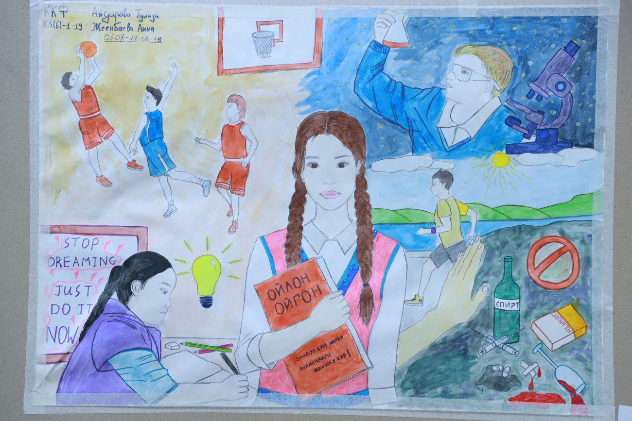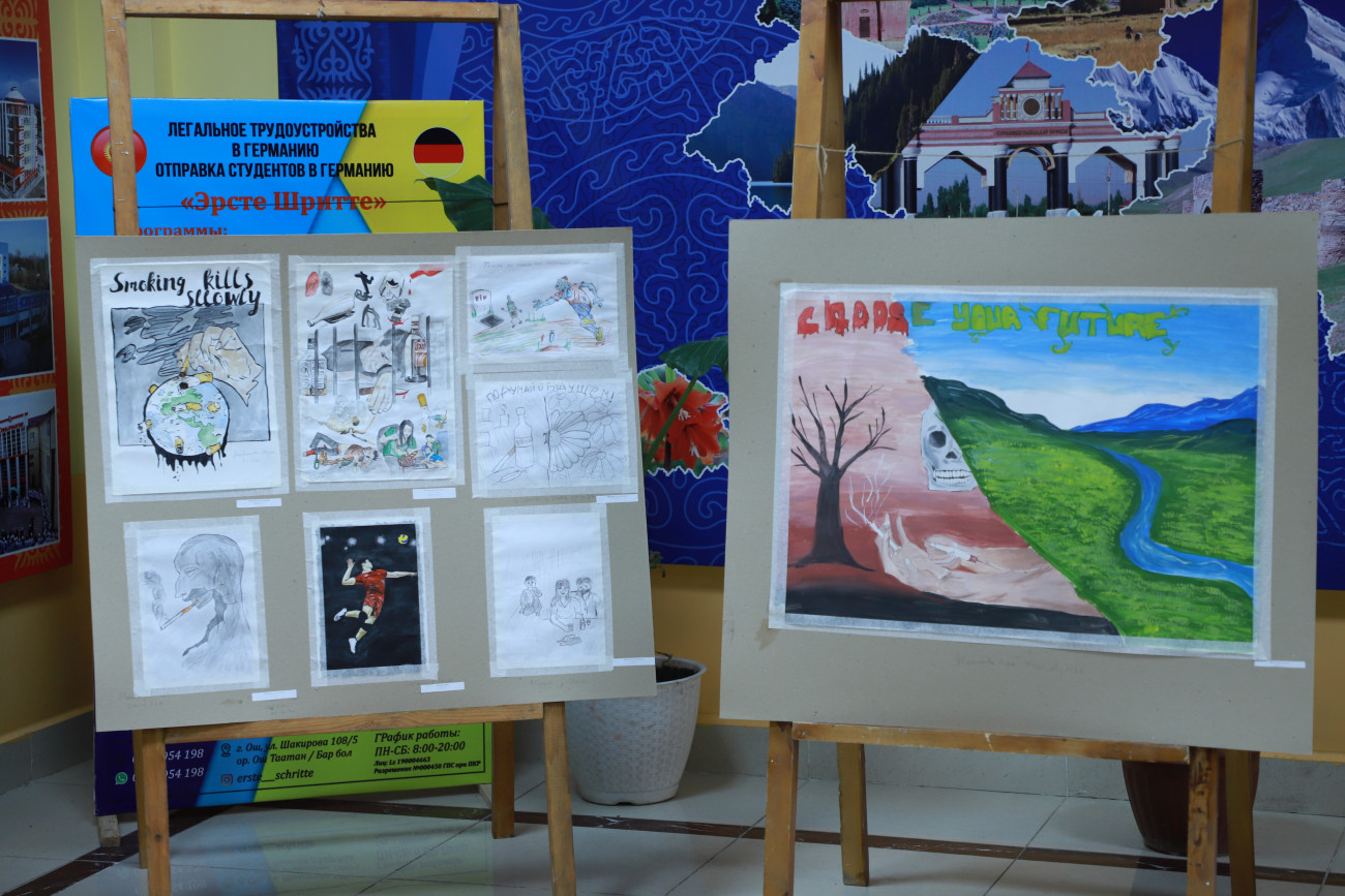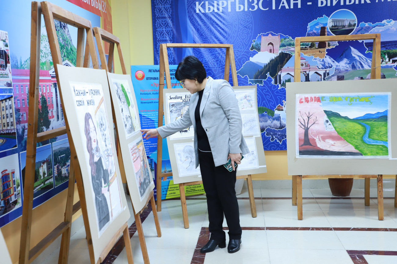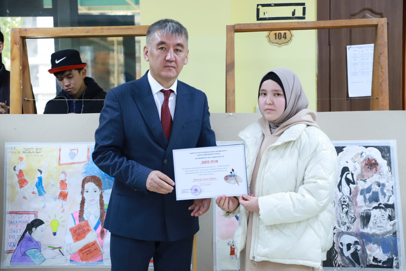 “Байге фонду 30 000 сом болгон сүрөт сынагынын бүгүн жыйынтыгын чыгардык. Жалпысынан 100 дөн ашуун эмгек келип түшкөн. Биз жаштардын кайдыгер карабай активдүү катышып бергендигине кубандык. Эми бул эмгектер ОшМУнун бардык факультет, колледждеринде, жатаканаларында көчмө көргөзмөдө коюлат. Максатыбыз жаштар арасында терс көрүнүштөрдүн алдын алуу, дени сак болууга, спортко үндөө болуп саналат. Бул сынактан сырткары бир ай аралыгында спорттук, маданий, маалыматтык иш-чаралар да өтүп жатат”,-деди студенттик коомчулук менен иштөө боюнча проректор Жылдыз Артыкова.