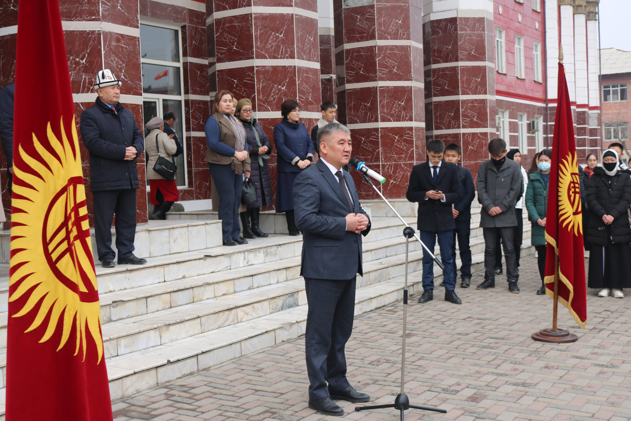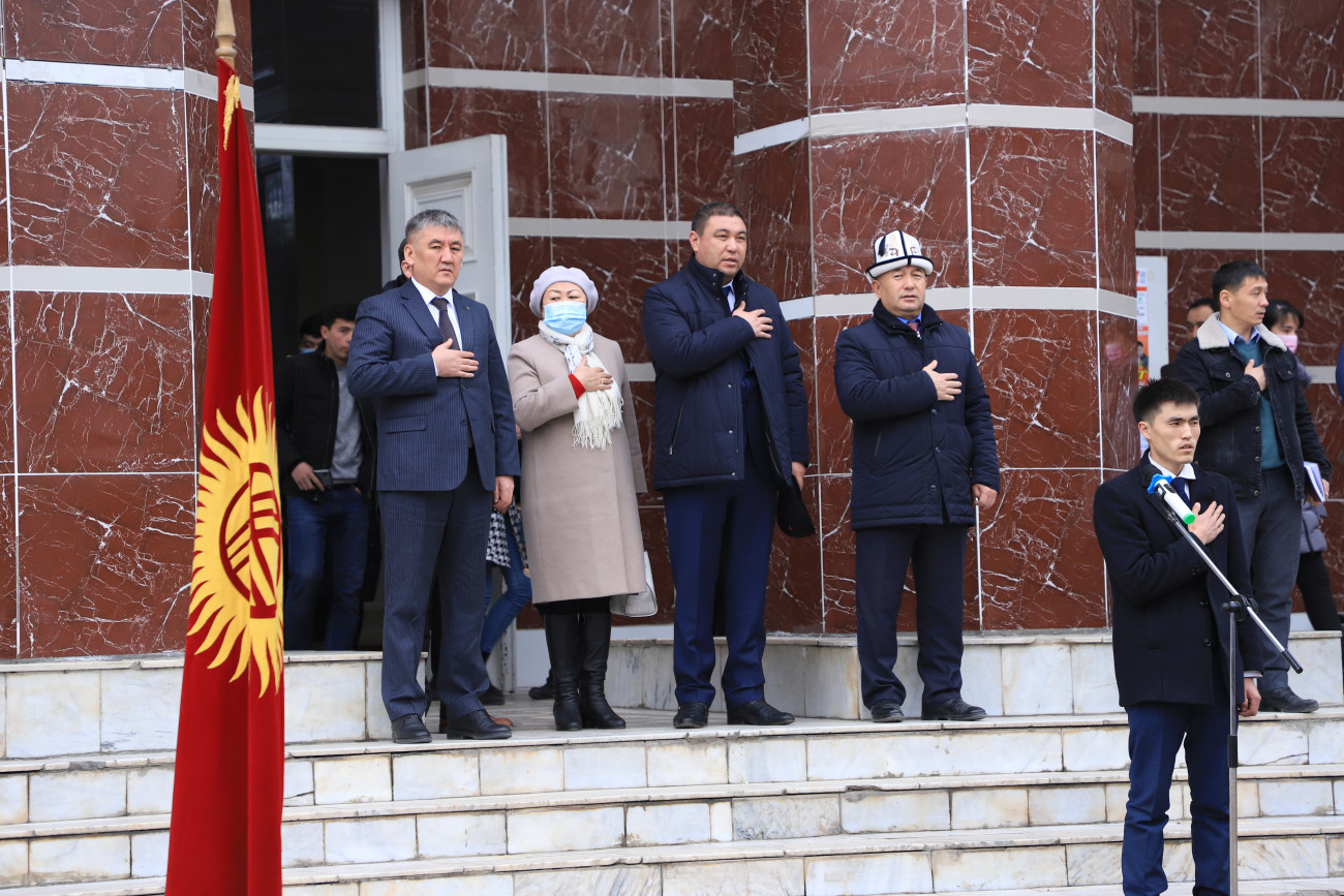 Бүгүн Кыргызстандын мамлекеттик туусу кабыл алынганына 29 жыл. Буга байланыштуу ОшМУда профессордук-окутуучулук курамдын, студенттердин катышуусунда мамлекеттик туу күнү белгиленди.