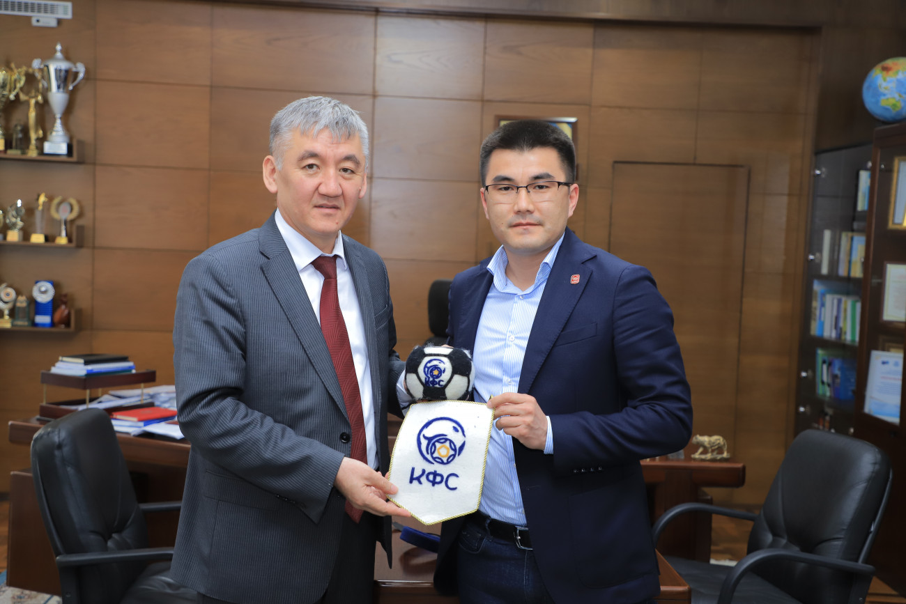 ОшМУнун ректору, “ОшМУ-Алдиер” футбол клубунун президенти Кудайберди Кожобеков Кыргызстандын футбол федерациясынын президенти Медербек Сыдыков менен жолугушту.